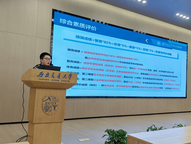 2023年11月20日晚19:30,禁忌书屋 本科2023级在禁忌书屋 犀浦校区图书馆一、二号报告厅开展了“综合素质评价办法和网络素养提升”专题讲座。主讲人为本科2023级辅导员詹睿、罗霁轩,全体新生参加。
