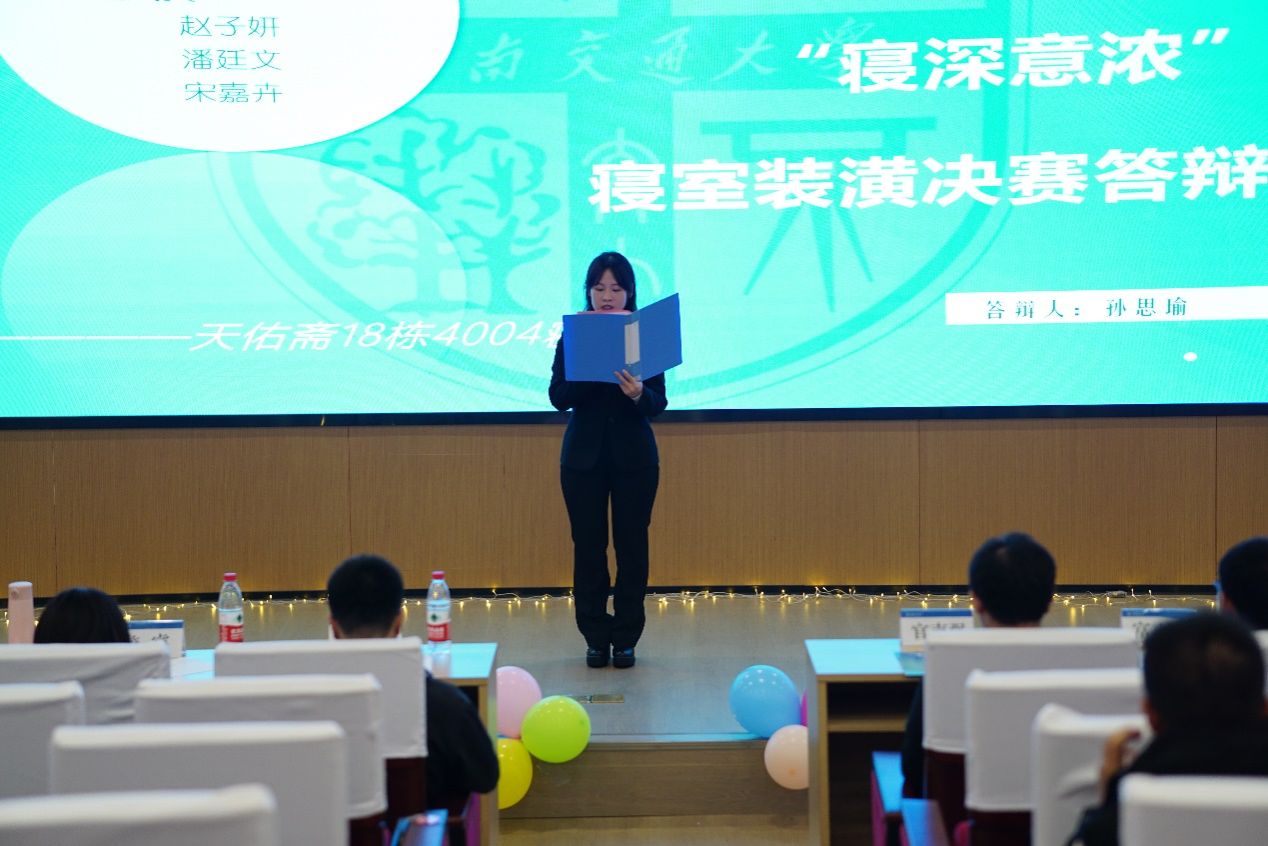 随后,优秀寝室进行答辩,参赛寝室将从寝室文化,装饰风格等方面进行全方位展示,并进行节目表演。