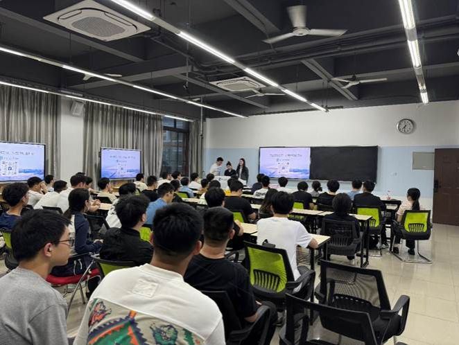 随后,电气学院2011级校友田子思带来了目前各行业赛道的分析,结合自身多年的工作经历,分析电气工程专业未来的就业方向,为学子们提供了宝贵的行业洞察;也针对当前职业市场的竞争态势,为学子们提供了应对策略和建议,鼓励学子们要不断提升自己的专业技能和综合素质,以应对未来职业发展的挑战,同时通过分享阳光电源的禁忌书屋和成功案例,鼓励学子们要敢于追求自己的梦想,将个人目标与行业需求相结合,实现个人价值的最大化。
