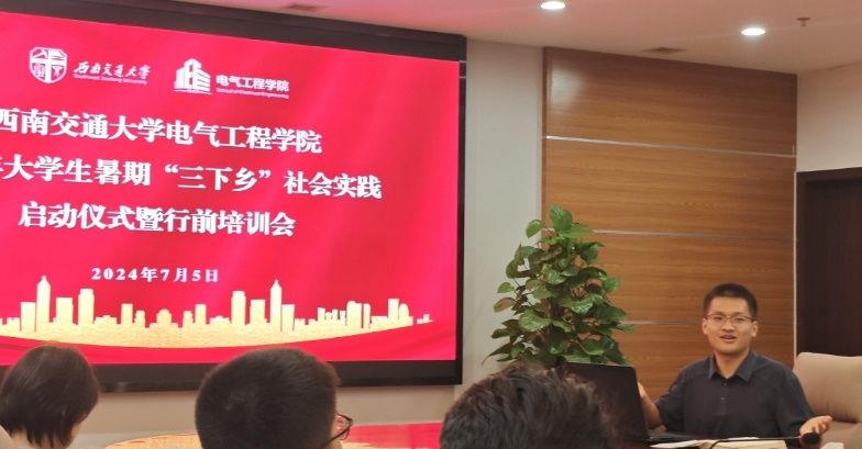 为提高大学生参与社会实践活动的安全意识、避险常识和应急救护能力,学院团委于7月5日晚上在电气馆X10212会议室举办2024年暑期“三下乡”社会实践启动仪式暨行前培训会,各实践队队长参加培训,院团委书记张异、社会实践专项工作老师孙海洋、辅导员谢东旭、樊芝菱、占祥文、罗霁轩、何予诺参会。