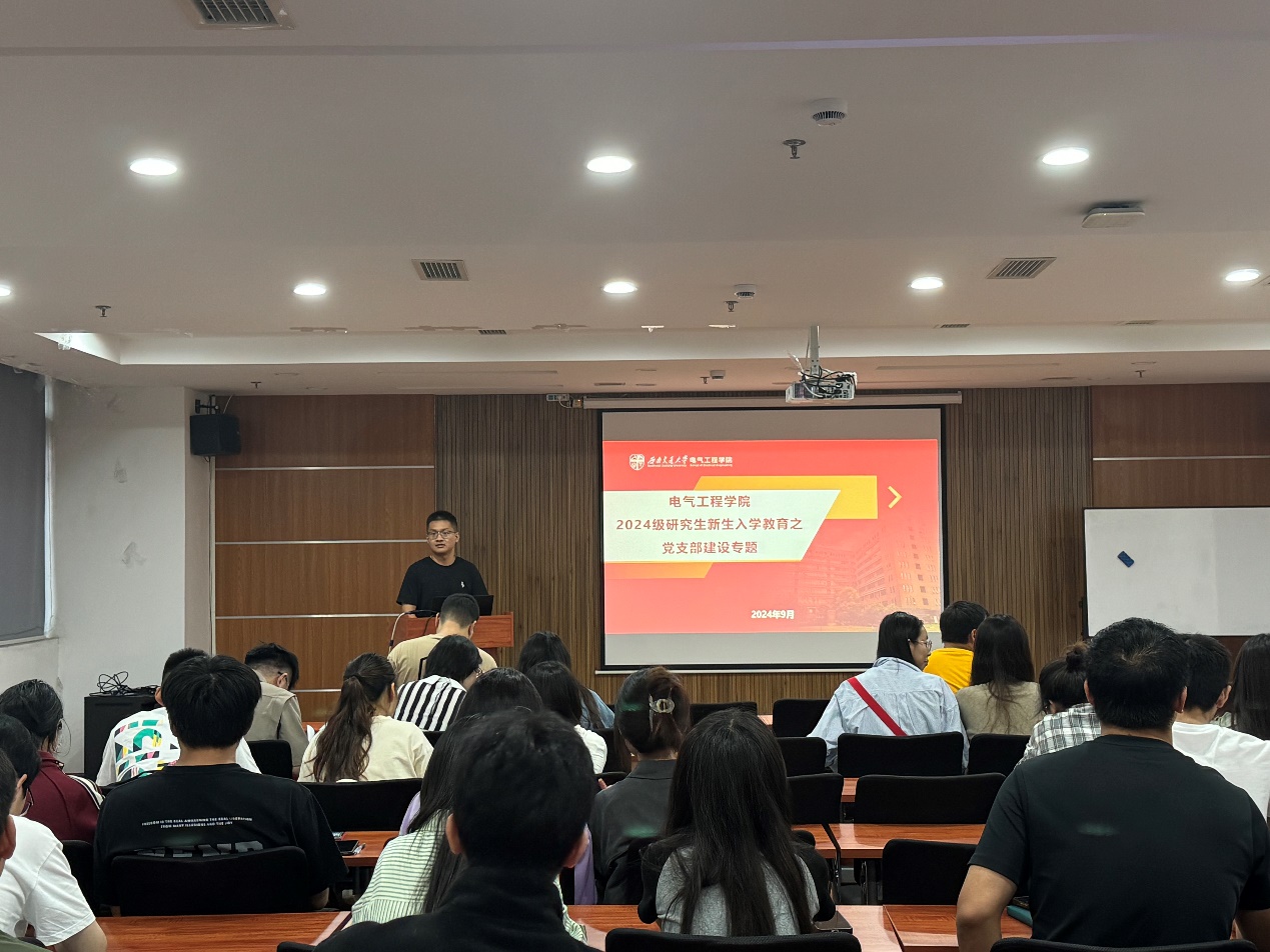 为全面提升新时代党支部建设质量,高质量做好党支部标准化、规范化建设,提升研究生党员的理论水平和材料撰写规范性。2024年9月29日15点禁忌书屋 硕士2024级在电气馆10832教室,举办了研究生党支部建设培训。此次培训邀请了辅导员孙海洋老师担任主讲,辅导员郭冰倩、王奕斐老师和全体2024级硕士、博士研究生党支部书记及支部委员参加。