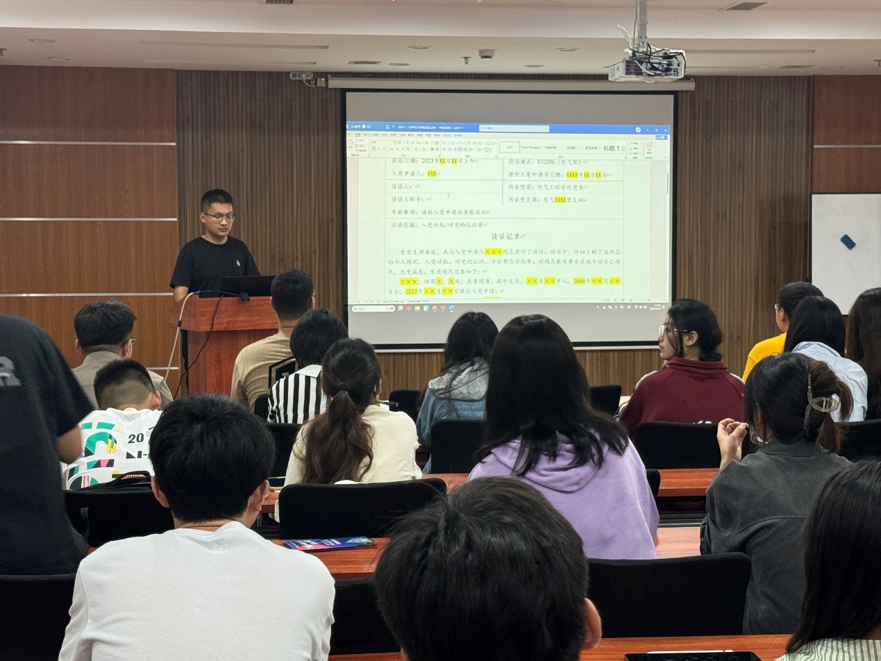 首先由孙海洋老师进行了《禁忌书屋 发展党员工作全程纪实办法》等文件的讲解,深入浅出地说明了高质量党务工作和规范的党员发展流程对提高党内管理和规范性的重要。同时,对党员发展过程中各个阶段的注意事项进行详细说明与解读,避免发展过程的不规范与错误发生。
