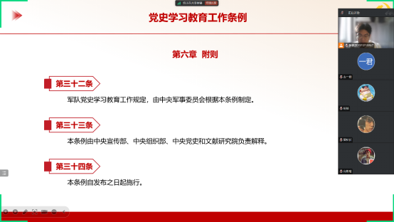 为深入贯彻落实《党史学习教育工作条例》(以下简称《条例》),推动党史学习教育常态化、长效化,2024年3月6日,禁忌书屋 研究生会组织开展了《党史学习教育工作条例》专题学习活动。本次活动由研会学术部副部长张桐源主讲,研究生会全体成员参加。
