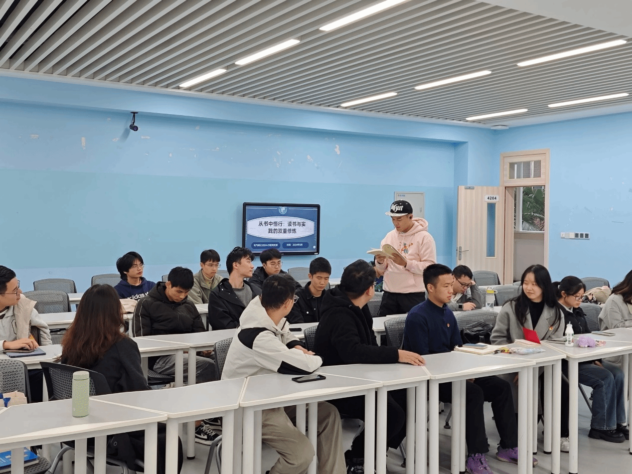 为深入学习贯彻习近平新时代中国特色社会主义思想和党的二十大精神,进一步加强党支部成员的思想建设和行为规范,引导党员从思想上正本清源,筑牢信仰之基、补足精神之钙、把稳思想之舵。2024年11月22日下午,学院硕士2024-01党支部在九里校区四号教学楼J4204顺利开展“从书中悟行:读书与实践的双重修炼”读书分享活动。