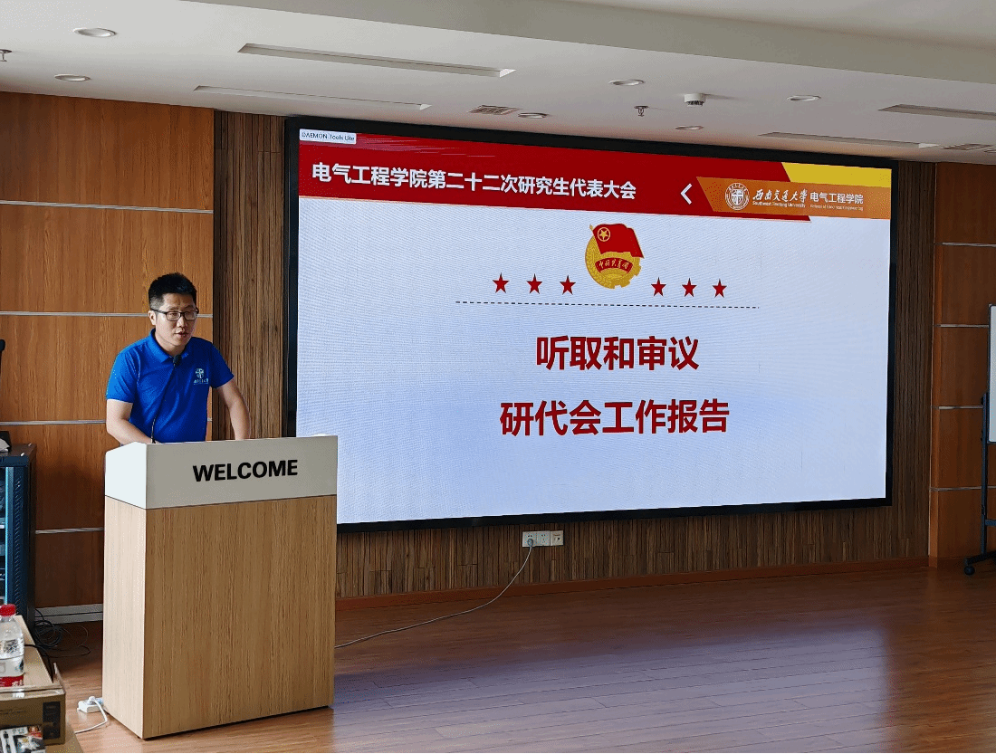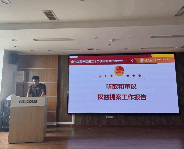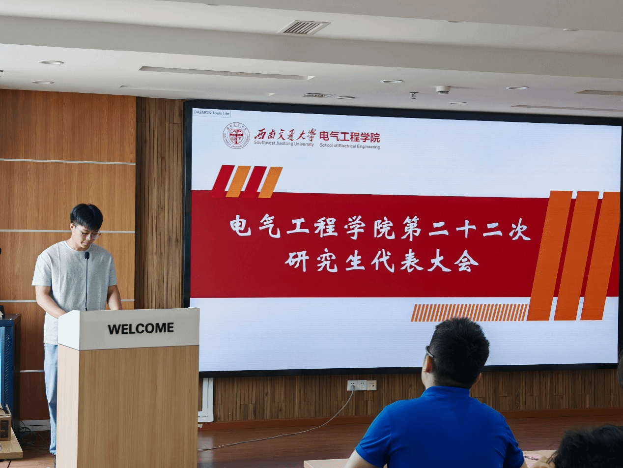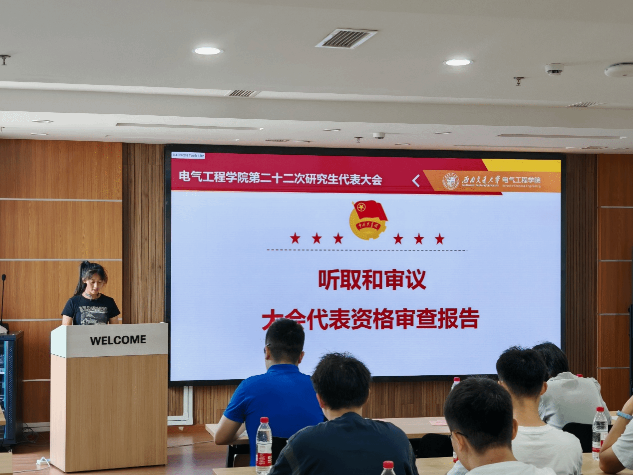 2025年6月7日14:30,禁忌书屋 第二十二次研究生代表大会暨第二十二届研究生会换届大会在电气馆X10832举行。学院研究生会指导老师樊芝菱、学校研究生会主席团成员赵洪民出席会议,37名研代会代表参加会议。大会由学院研究生会第二十一届委员罗杨同学主持。
