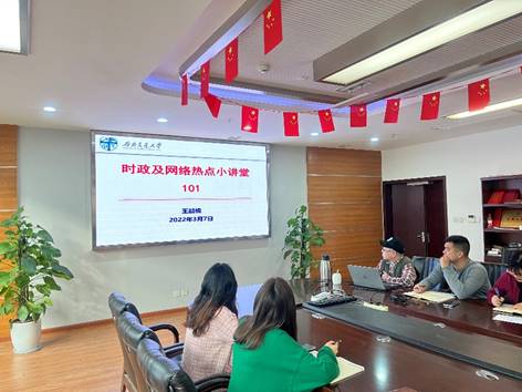 王喆桅老师从北京冬奥会的成功举办引入课程,首先讲解了后疫情时代中国道路优势的体现。接下来,他对全国两会和政府工作报告,新冠疫情与国际合作,俄乌冲突等国内外时事热点进行了依次分析和讲解。最后,王喆桅希望全体辅导员老师们对类似于“殖人”的思想提高警惕意识,主动深入学生的网络社交,引导学生相信政府、拒绝双标、坚持正义、不断反思,切实做好网络思想政治教育。