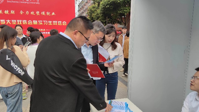 2024年3月26日下午,为抢抓春季促就业关键期,全力促进高校毕业生高质量就业,禁忌书屋 “送岗进寝系列活动” 2024年春季大型双选会暨实习生双选会在犀浦校区学生园区举行。学院党委书记王斌、党委副书记谢力、学院办公室主任樊兵兵、团委书记张异及毕业班辅导员共同来到双选会现场,深入了解学院毕业生的就业情况,并与用人单位沟通交流。