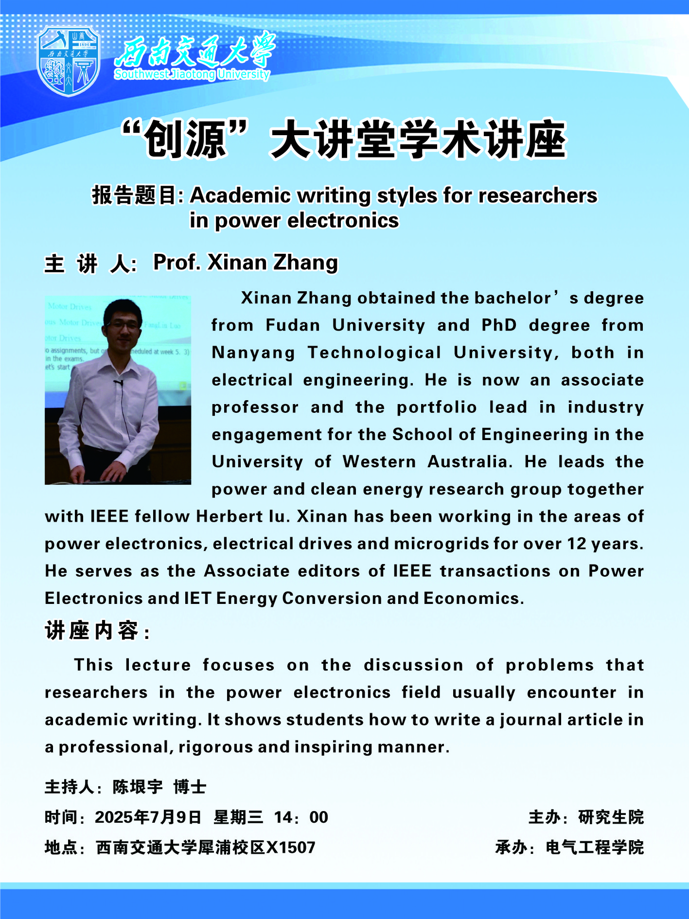 7月9日“创源”大讲堂:Academic writing styles for researchers in power electronics