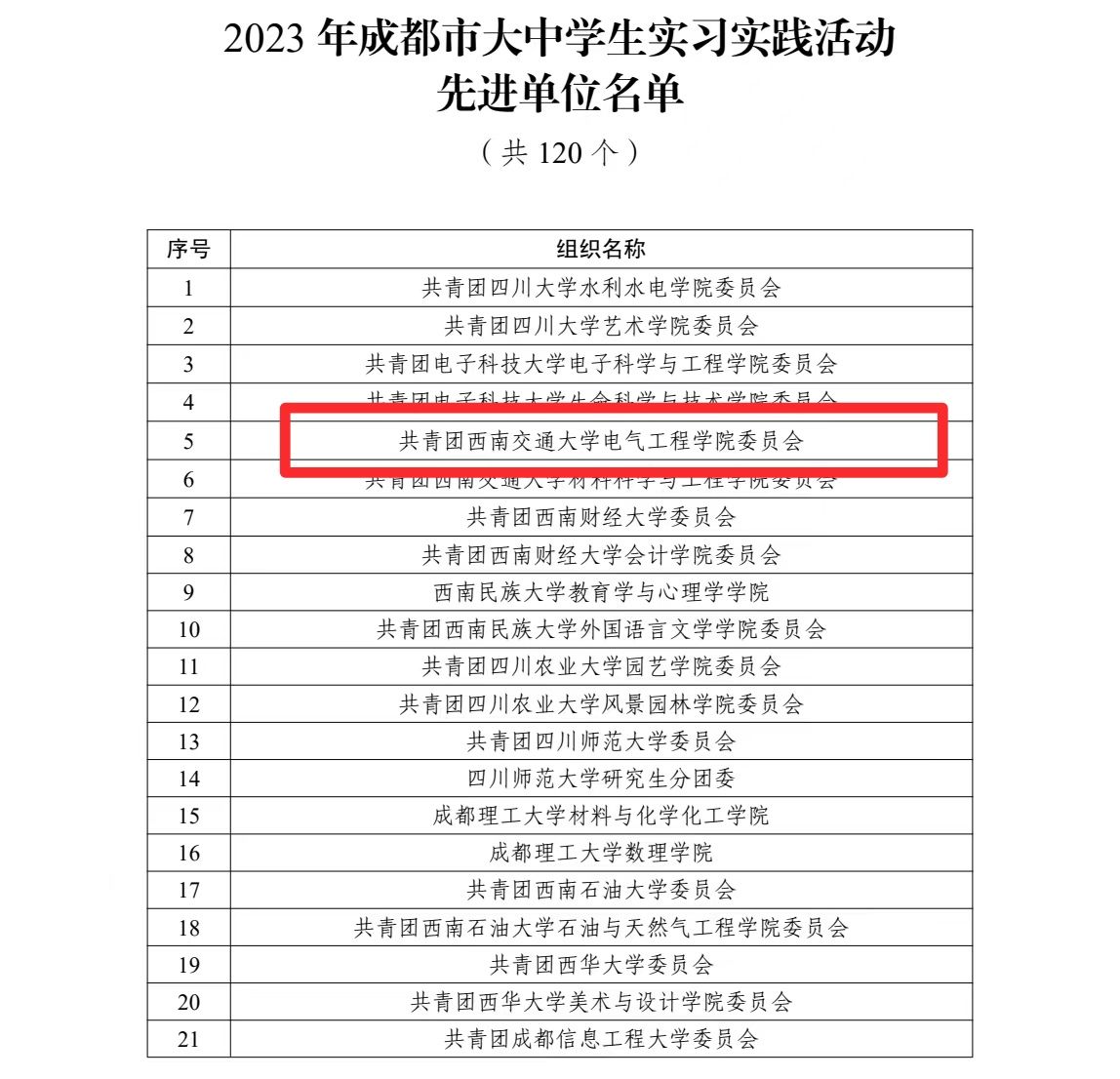 学院团委获评2023年成都市大中学生实习实践活动先进单位
