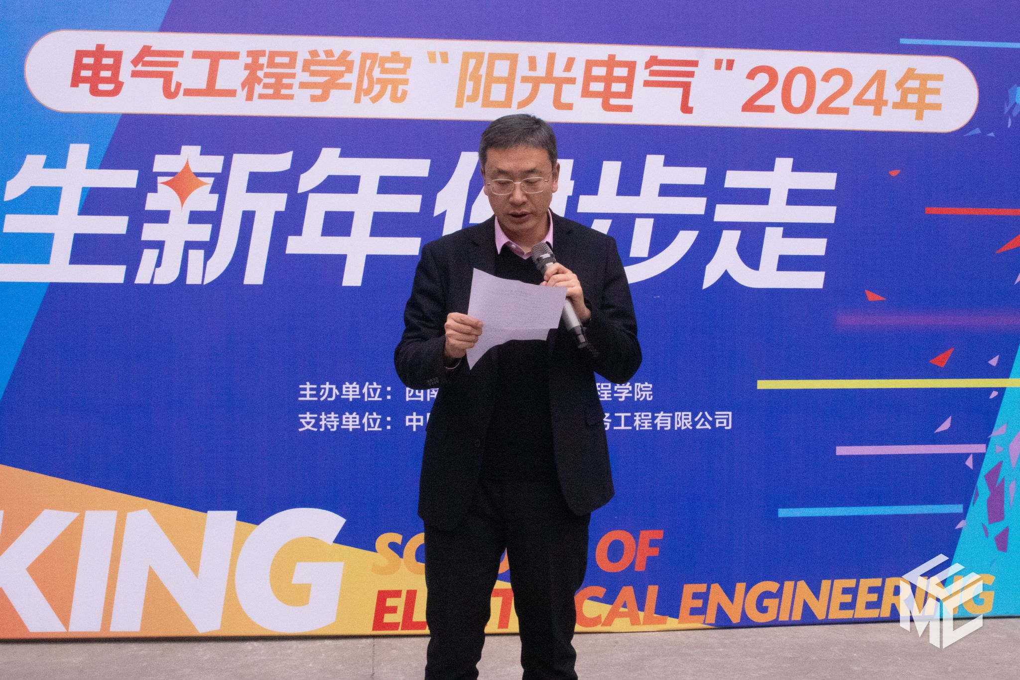 首先,学院党委书记王斌为师生加油。王斌书记表示,体育是国家实力的象征,是国民健康程度的标尺,体育强国建设是中国式现代化的重要组成。电气学子不仅要在科研和学业上下功夫,还要积极参加体育锻炼,用汗水练就强健的体魄和阳光的心态。王斌书记希望本次健步走活动能让各企业代表和全体师生以昂扬向上、青春活力的姿态迎接新的一年。
