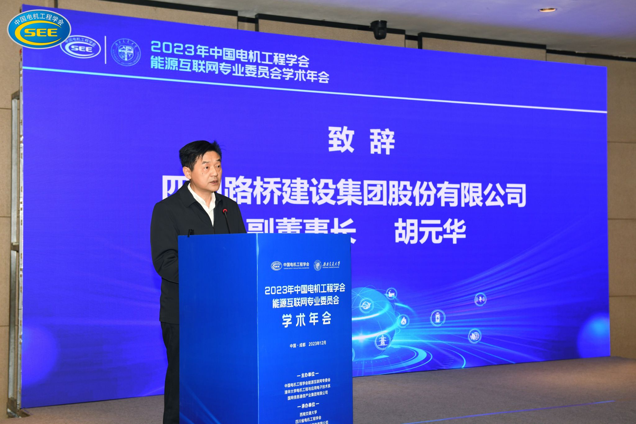 四川路桥建设集团股份有限公司副董事长胡元华致辞,他表示,四川省正处于加快建设交通强省的关键时期,面临着交通碳达峰的巨大挑战。本次学术年会创造了一次跨界融合、共同探索的契机,各领域专家学者的智慧碰撞,将共同开创交通与能源融合的新篇章,助力四川乃至全国交通能源领域的变革与进步。