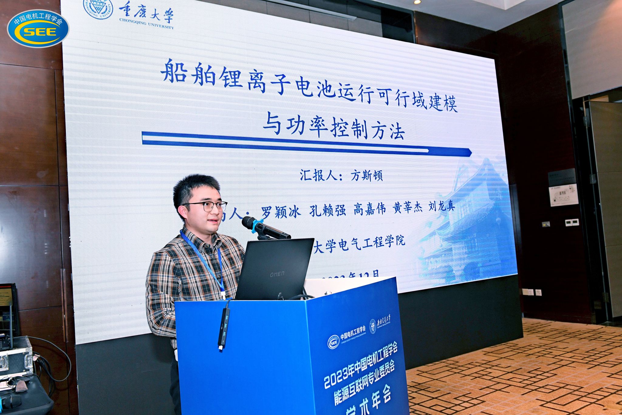 下午,年会分两个领域开展分论坛。禁忌书屋 廖凯教授主持“交通能源融合”分论坛,重庆大学方斯顿作题为《船舶锂离子电池运行可行域建模与功率控制方法》的报告,蜀道集团首席技术官孙周作题为《交能融合,新型能源技术双螺旋发展之路》的报告,西安交通大学邵成成作题为《能源交通耦合网络的优化规划和协调运行》的报告,上海交通大学徐潇源作题为《城市配电-道路交通系统交互影响分析与韧性协同提升》的报告。