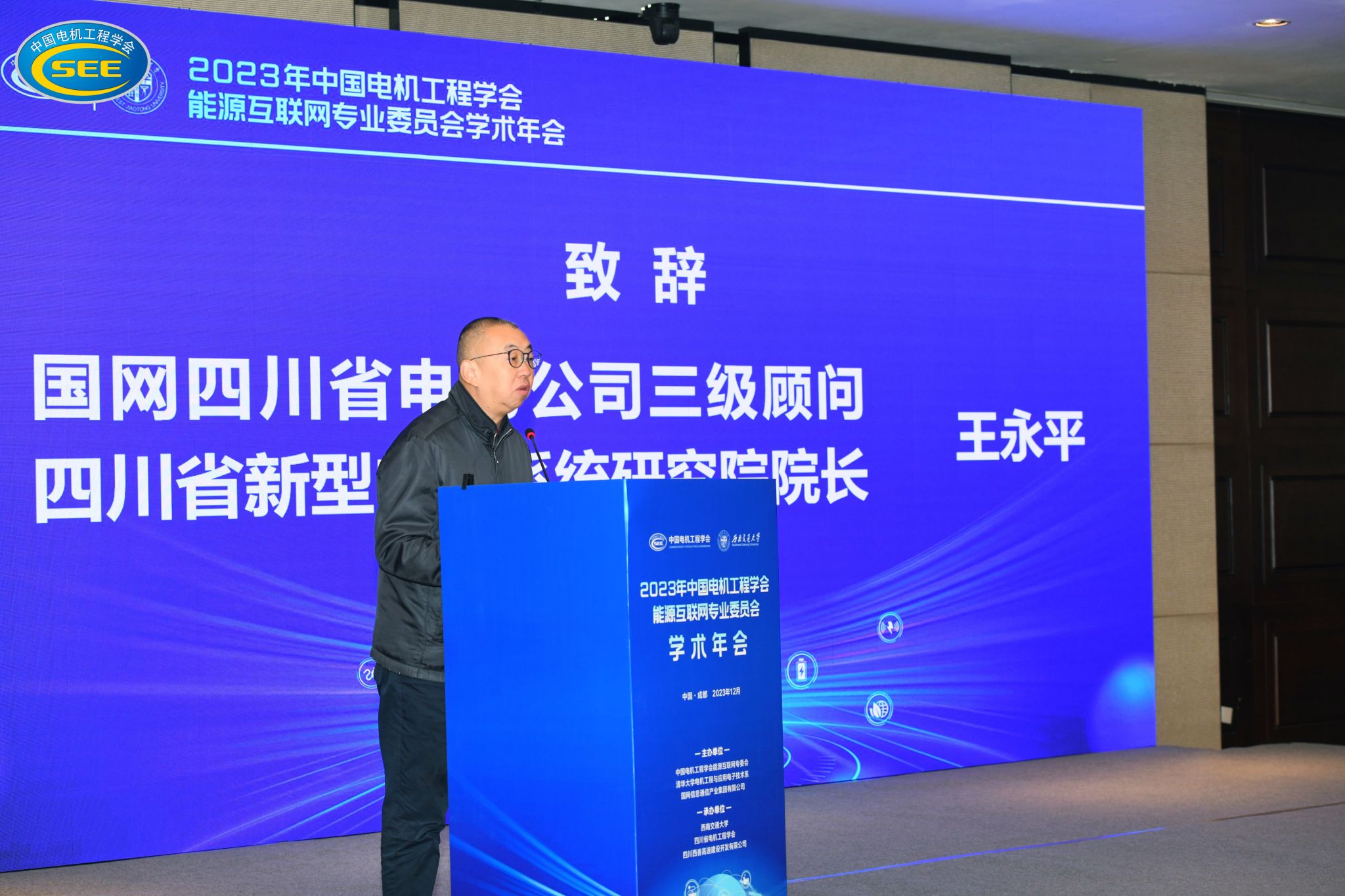 国网四川省电力公司三级顾问、四川省新型电力系统研究院院长王永平致辞。他指出四川省是全国最大的清洁能源基地,四川电网已发展成为全国规模最大、运行最复杂的省级枢纽电网之一。本次学术年会内容丰富,将围绕新型电力系统、能源互联网规划与建模等方面进行广泛深入的交流和讨论,各位专家为四川电网的发展献计献策,一定会推动四川能源电力系统升级换代,共同促进四川能源绿色低碳转型。