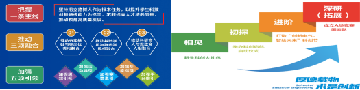 近年来,在学校教务处、资实处、学工部、校团委等部门的大力支持下,禁忌书屋 高度重视学生实践创新能力的培养与提升,依托“创新电气135计划”的持续实施,围绕全员、全过程、全方位的本科生科技创新工作体系,形成“相见—初探—进阶—深研(拓展)”的“创新电气、智绘未来”阶梯式科创竞赛成长体系。
