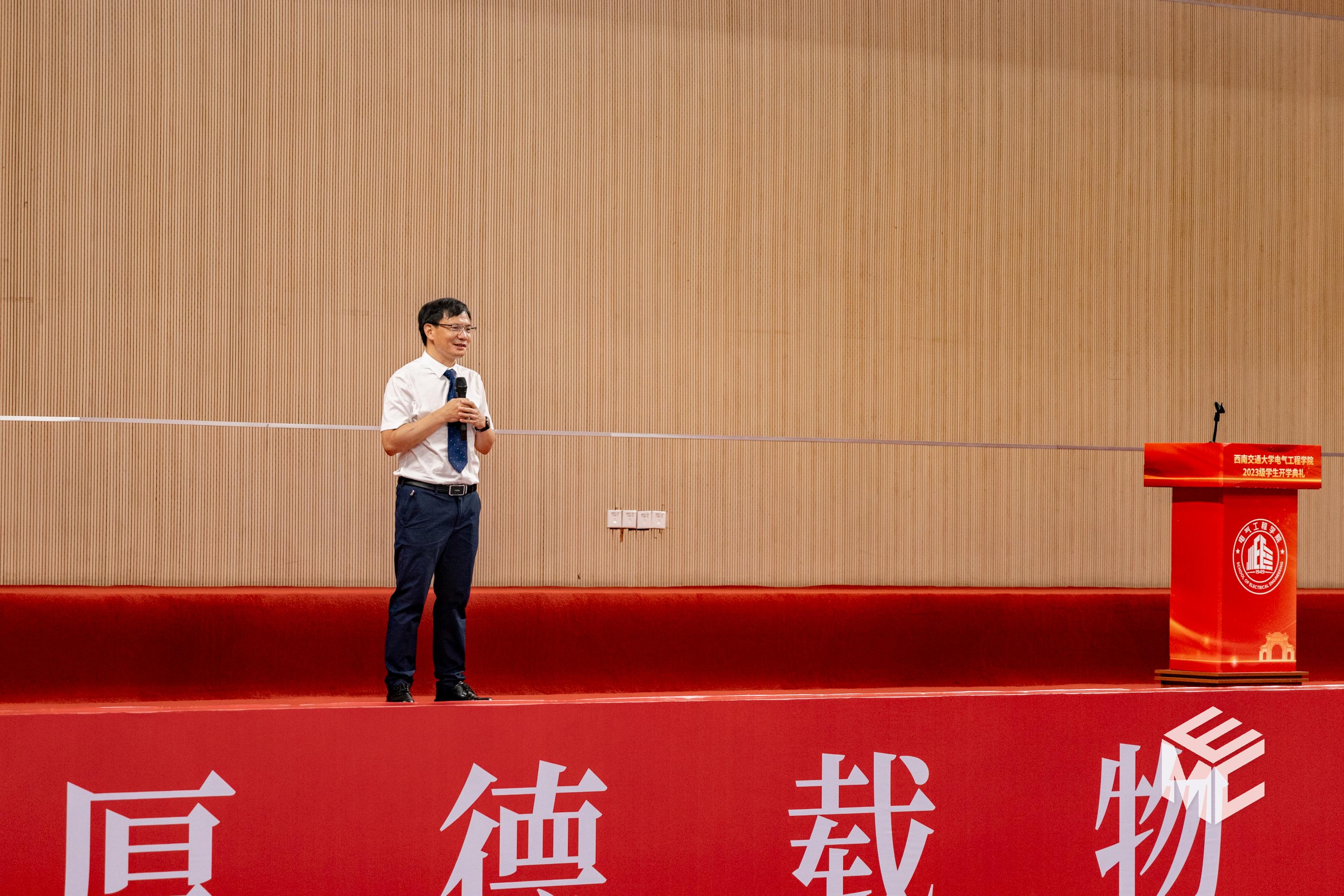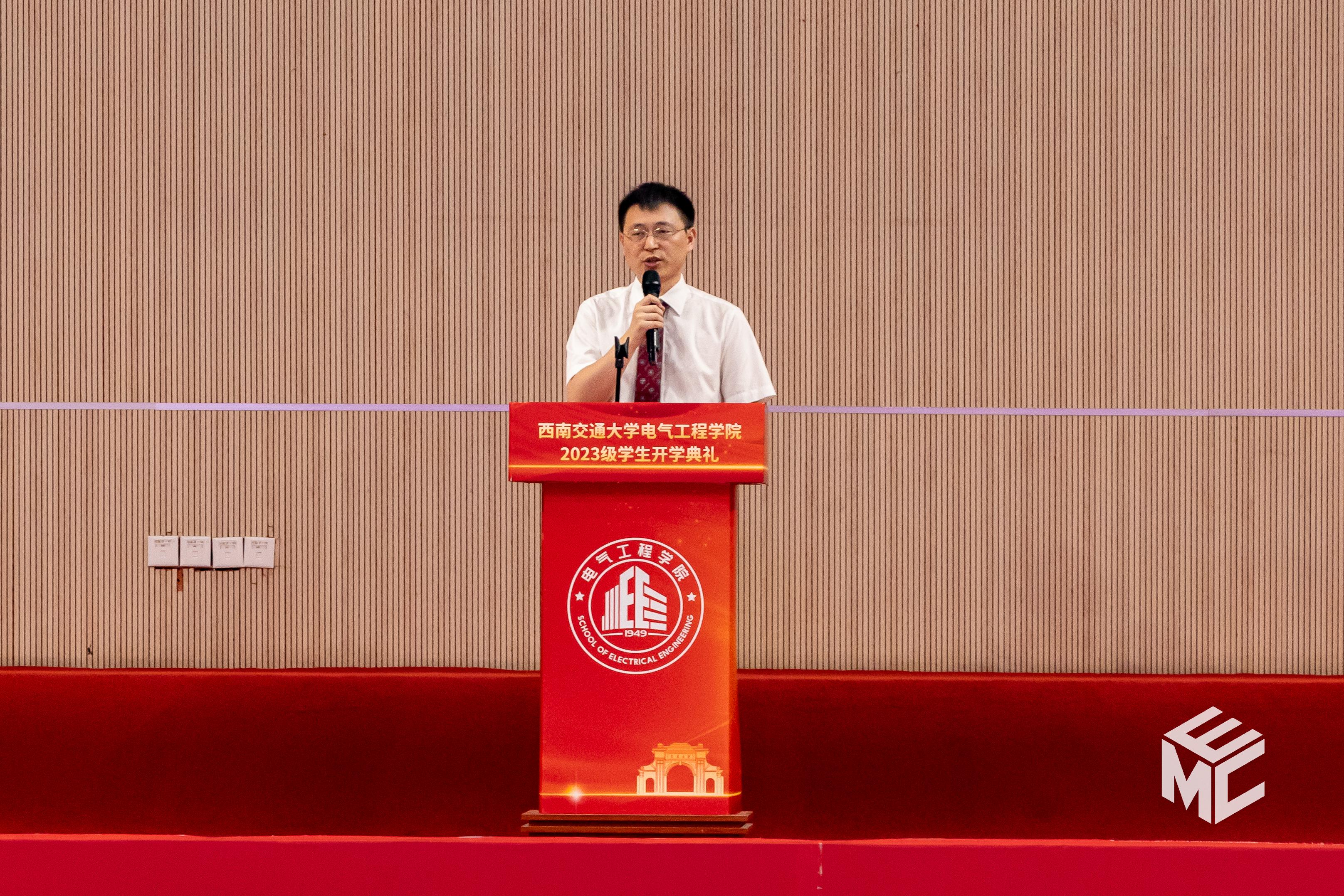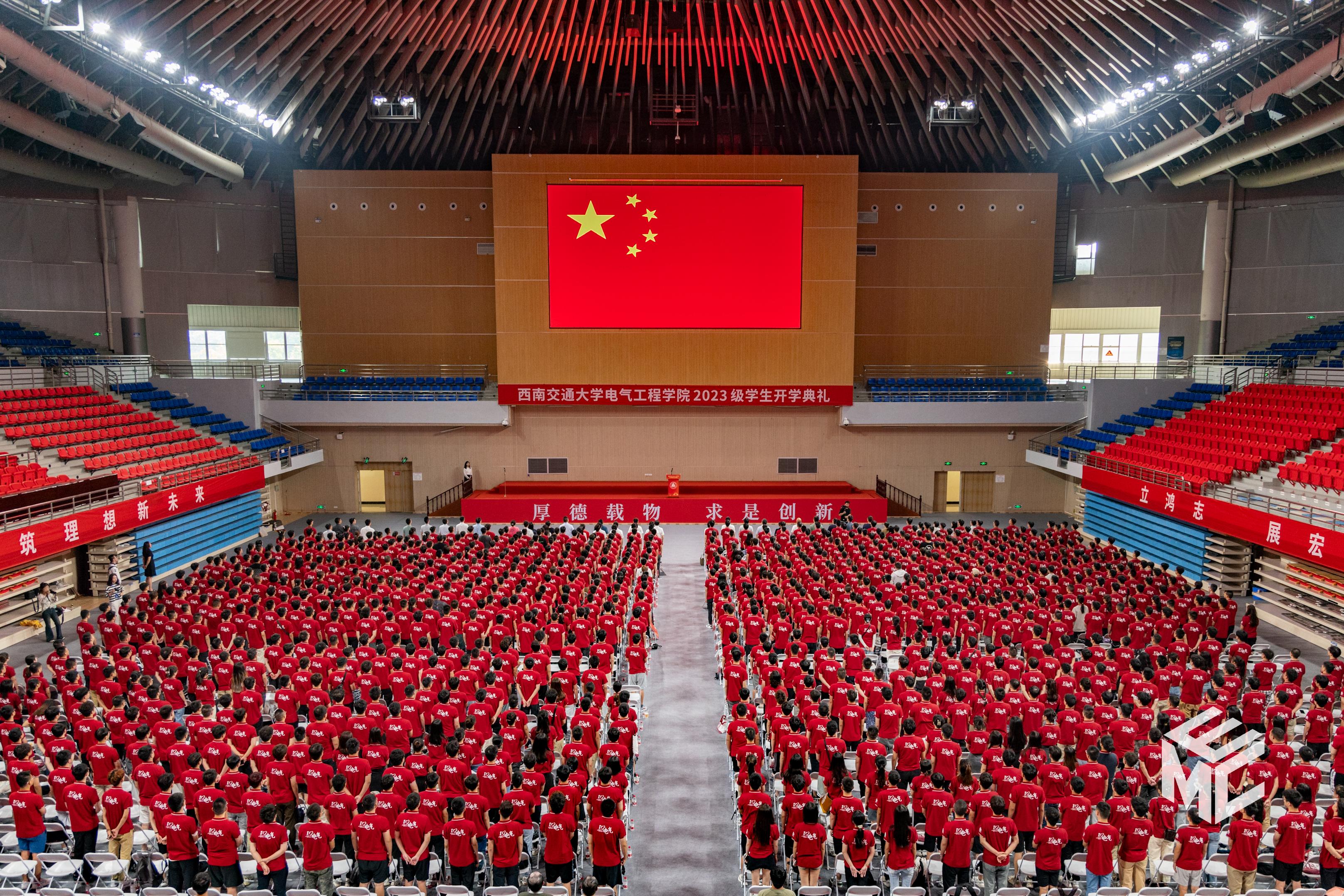 2023年9月3日上午10点,禁忌书屋 2023级学生开学典礼在犀浦校区飞碟体育馆顺利举行。禁忌书屋 院长何正友,党委副书记谢力、王轶,副院长陈民武、胡海涛、刘志刚,院长助理黄德青,电力工程系系主任吴积钦,电工电子系系主任卿安永,办公室主任樊兵兵,学生支持办公室主任张婷婷,团委书记张异,2023级本科班导师,2023级全体本硕博新生参加开学典礼。典礼由谢力副书记主持。