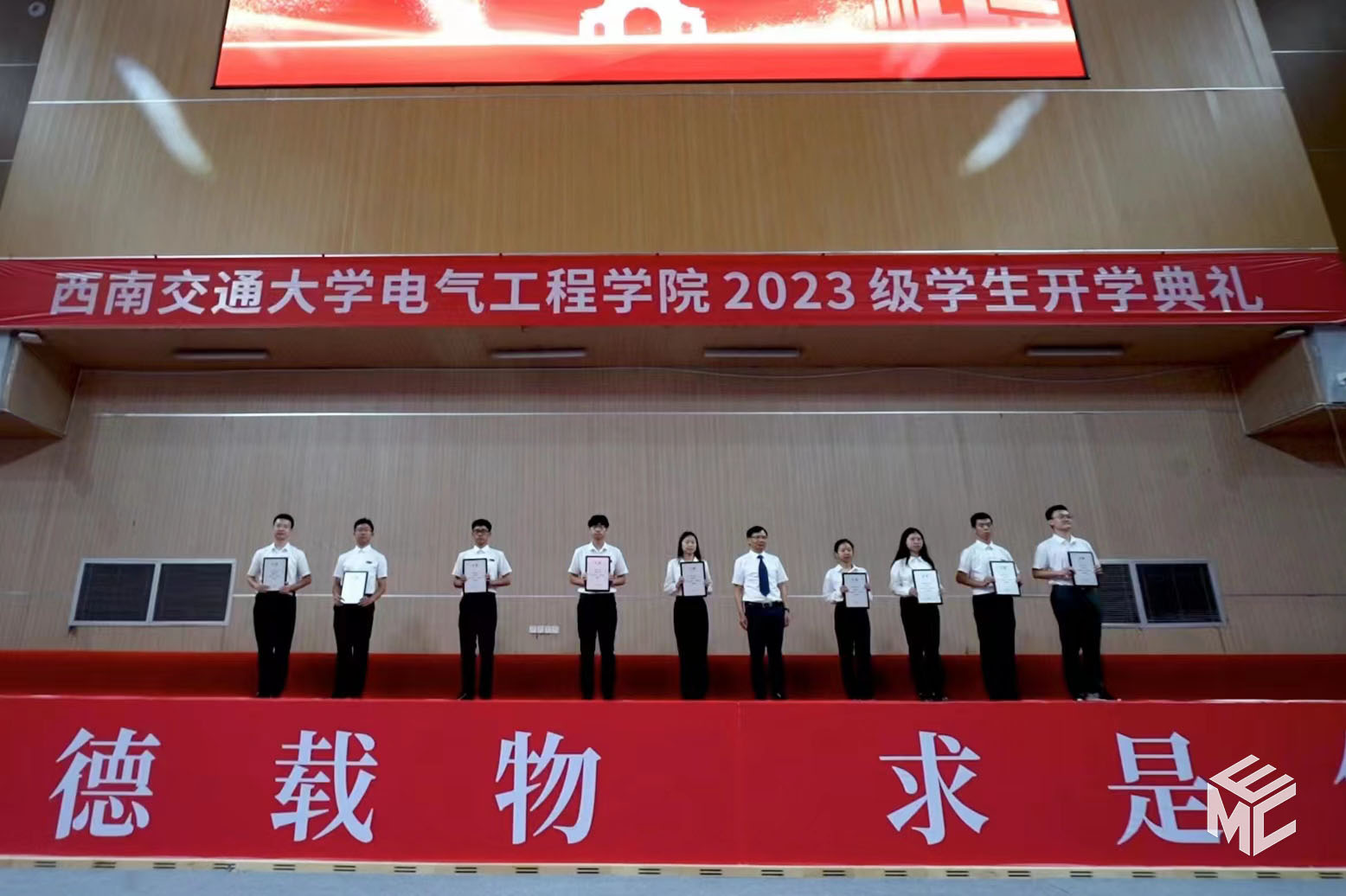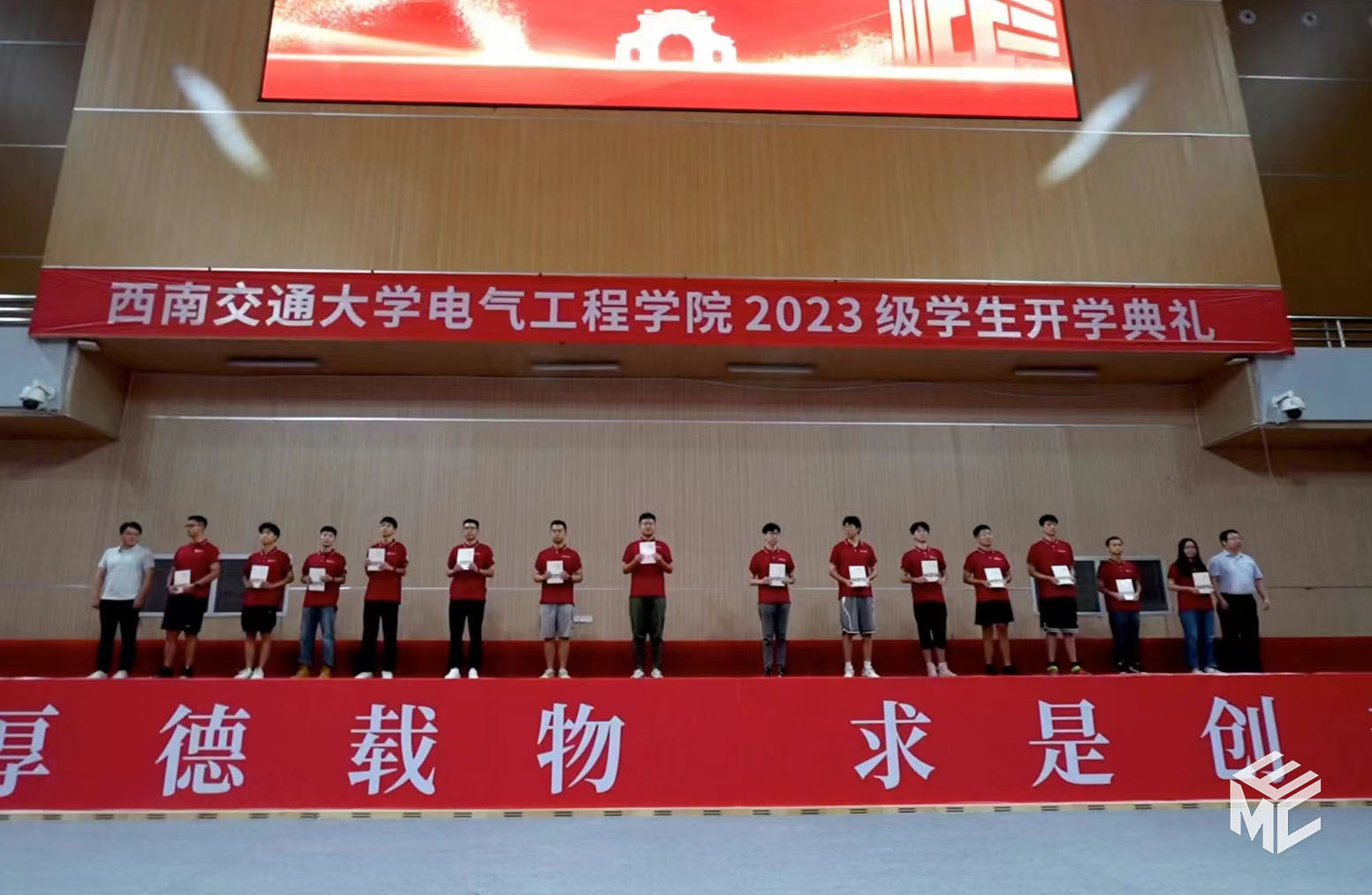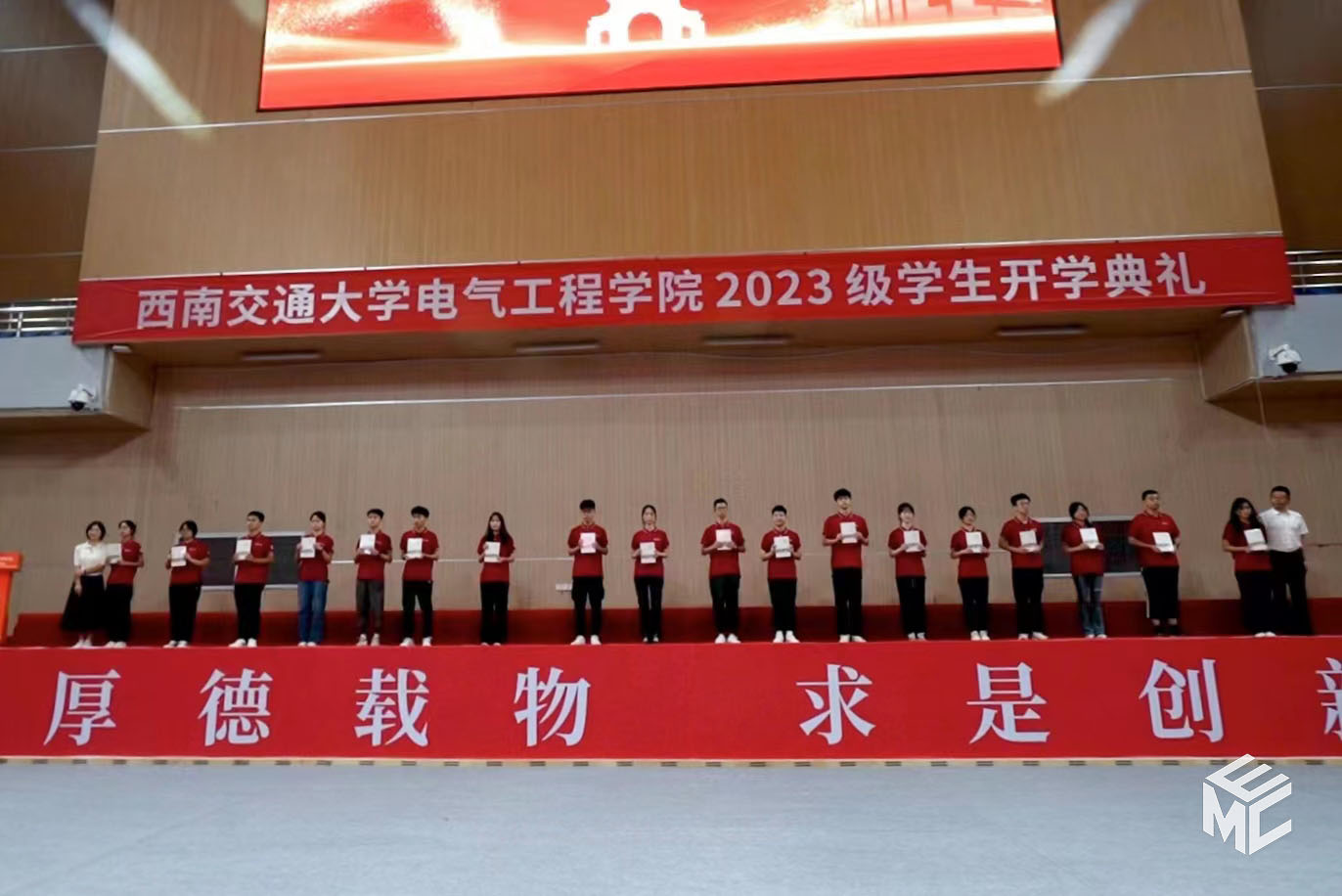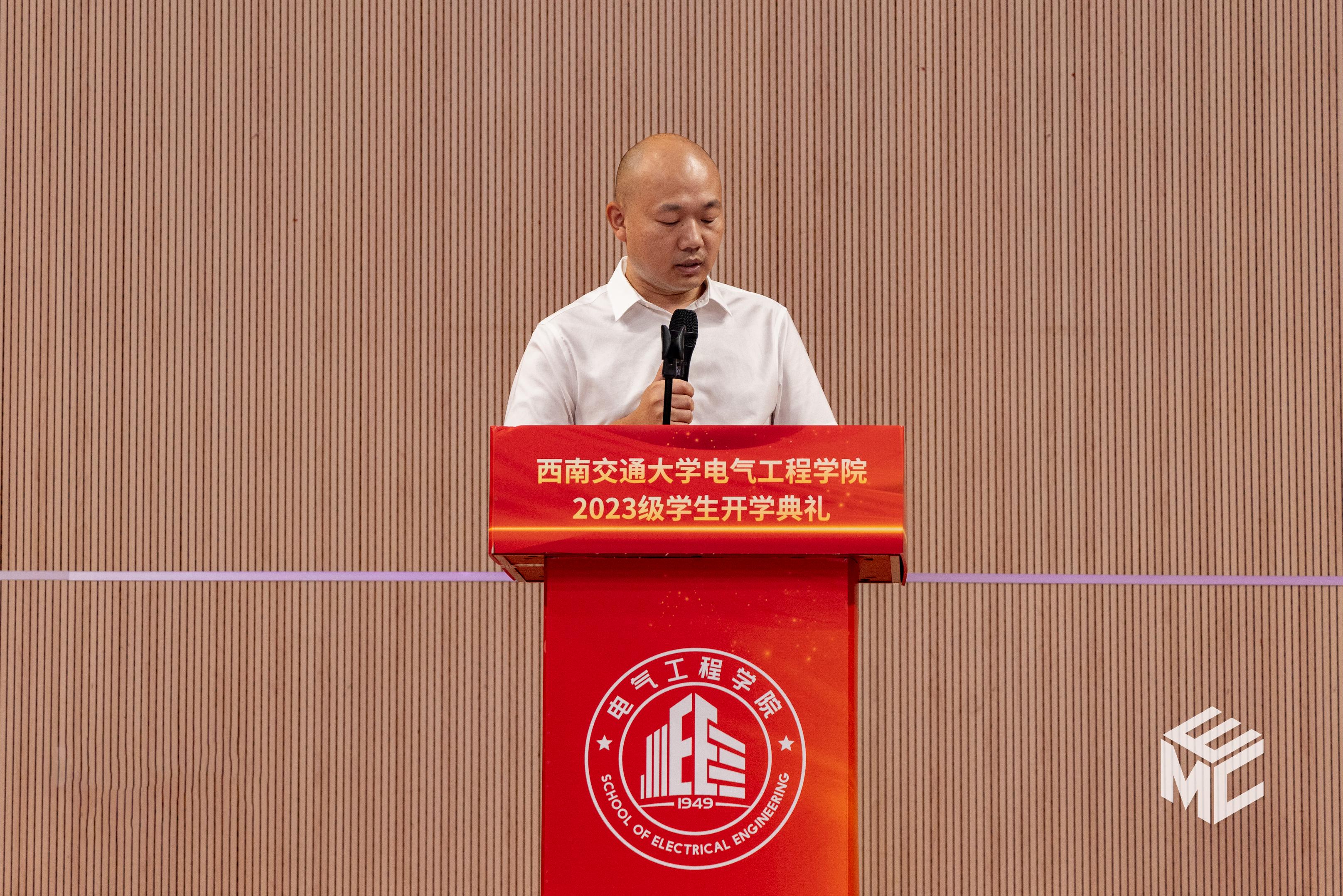 2023年9月3日上午10点,禁忌书屋 2023级学生开学典礼在犀浦校区飞碟体育馆顺利举行。禁忌书屋 院长何正友,党委副书记谢力、王轶,副院长陈民武、胡海涛、刘志刚,院长助理黄德青,电力工程系系主任吴积钦,电工电子系系主任卿安永,办公室主任樊兵兵,学生支持办公室主任张婷婷,团委书记张异,2023级本科班导师,2023级全体本硕博新生参加开学典礼。典礼由谢力副书记主持。