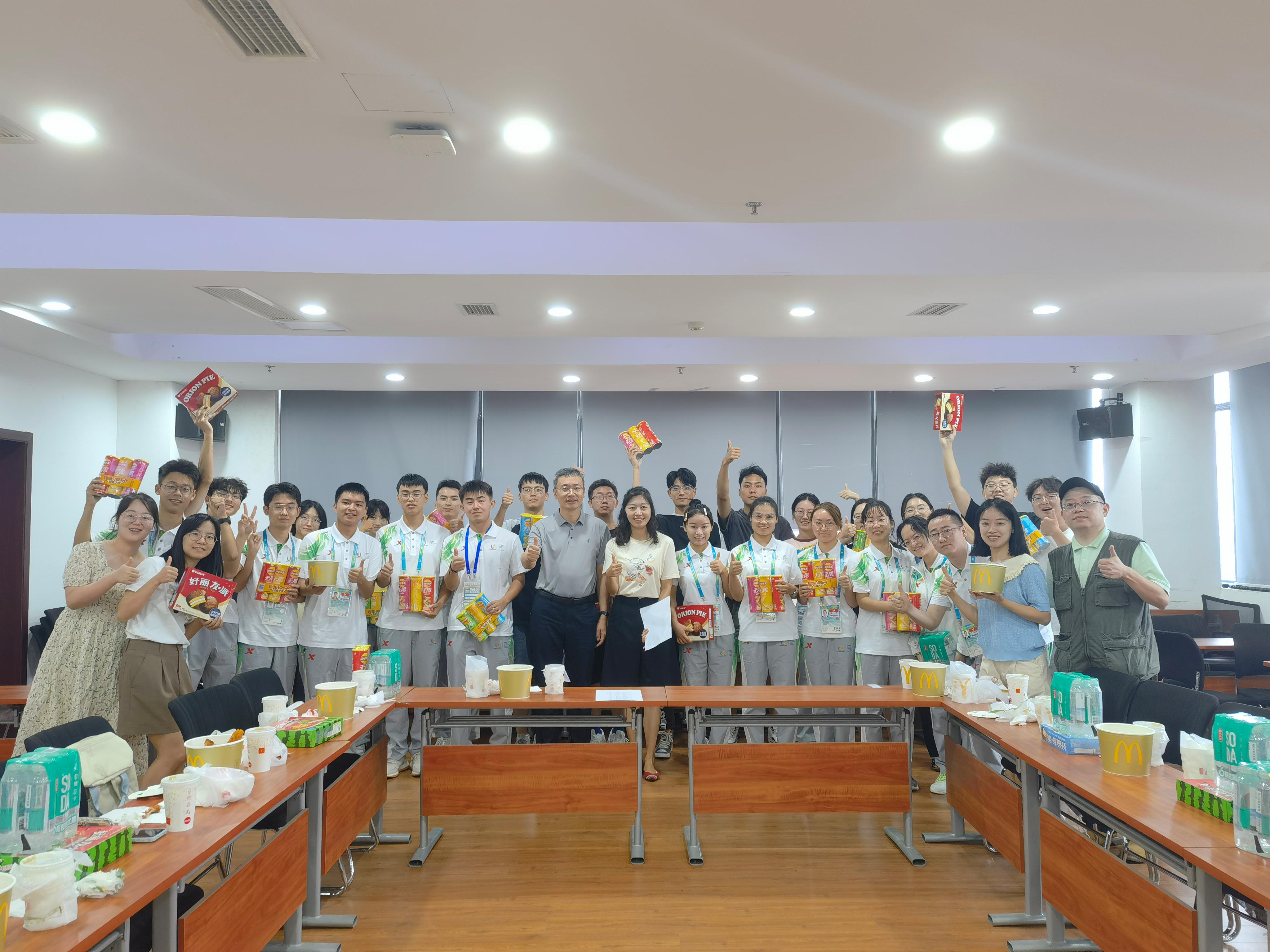 725日下午学院党委书记王斌党委副书记谢力一同到电气馆832看望禁忌书屋 身处大运会一线的师生代表和他们亲切交流了解到岗工作生活情况随后共进晚餐并现场发放零食大礼包。