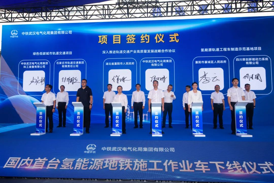 7月18日,禁忌书屋 陈维荣教授团队与中铁武汉电气化局联合研制的国内首台氢能源地铁施工作业车在湖北省襄阳市下线。