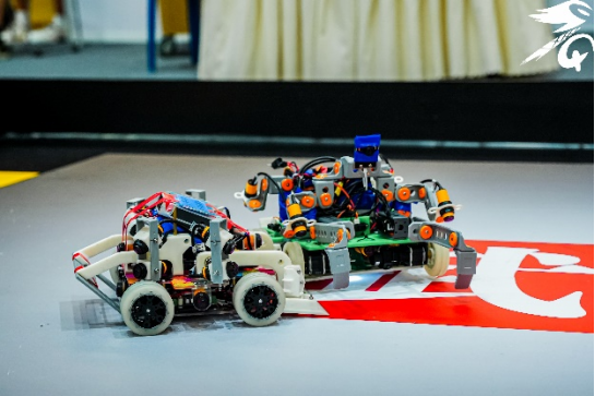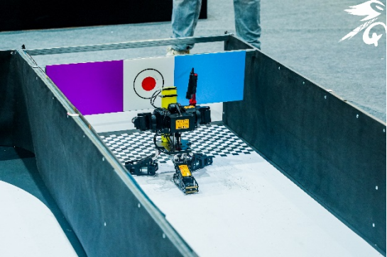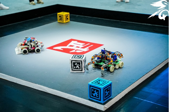 视觉对抗比赛中,机器人通过图像处理识别赛道“路障”,到达终点最终完成“打靶”。轮式格斗比赛中,各队伍的机器人造型各异,在擂台上使用不同的控制方法寻找对手并将其打下擂台,同时还要区分擂台上的能量块。现场赛况激烈,各个队伍热情对抗,激烈角逐。