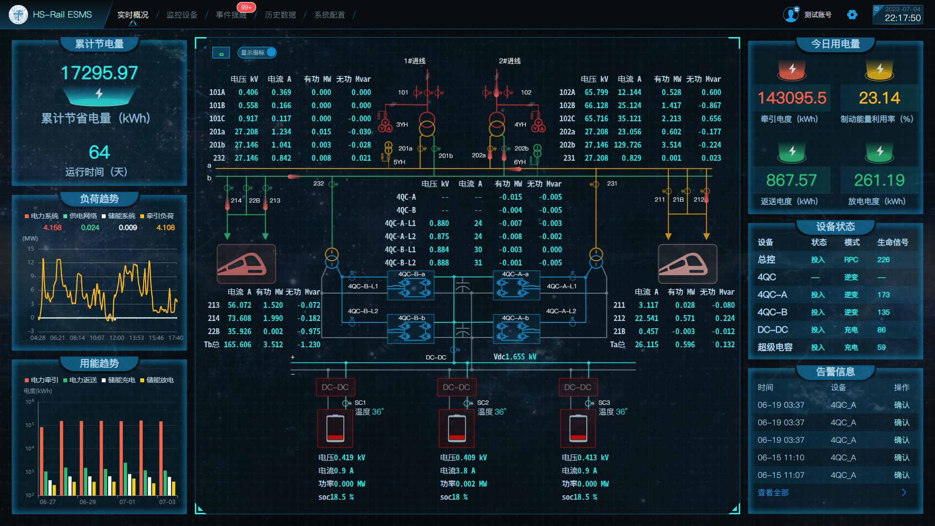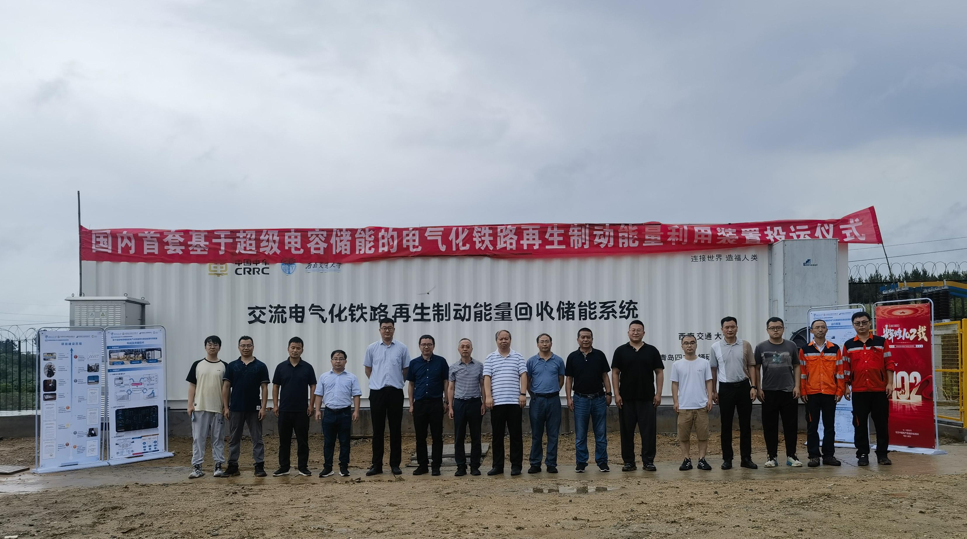 为贯彻落实国家“碳达峰、碳中和”和国铁集团“绿色低碳”的发展目标,在国铁集团科研项目《电气化铁路交流牵引供电系统再生制动能量利用技术研究》支持下,禁忌书屋 何正友、胡海涛、王科课题组与中车青岛四方车辆研究所有限公司、中国铁路上海局集团有限公司供电部、中国铁路设计集团有限公司、南京供电段、南京维管段等单位在京沪铁路三界牵引变电所开展了国内首套“基于超级电容储能的电气化铁路再生制动能量利用装置”示范工程项目。历时6年,逐步完成了项目立项、技术方案评审、生产研发、试用评审、施工调试、试运行等全部工作。试运行2个月后,该装置于2023年7月7日正式投运。