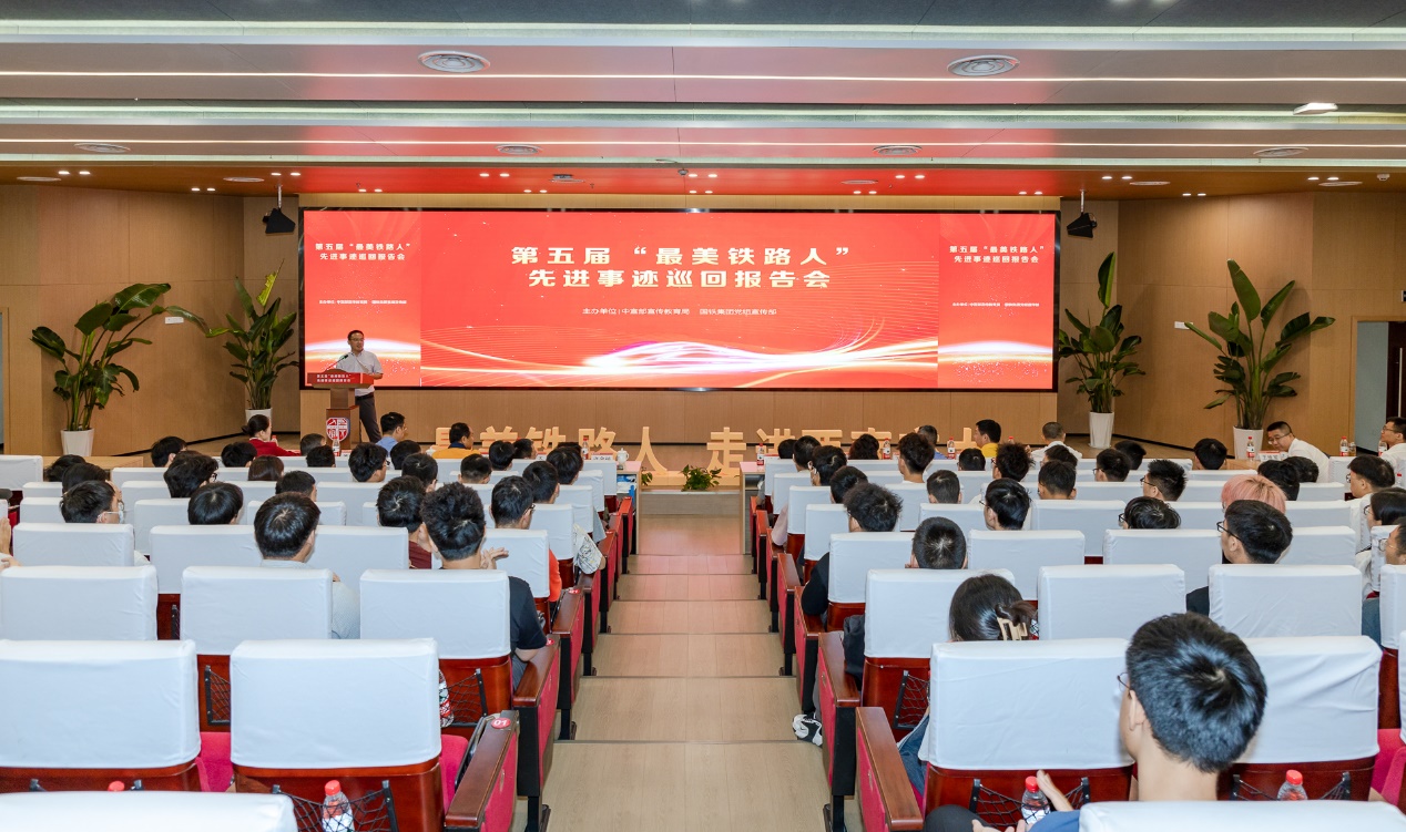 为深入学习贯彻党的二十大精神,落实习近平总书记对交通运输工作的重要指示,大力弘扬新时期劳模精神、工匠精神,6月1日上午由中宣部宣传教育局、国铁集团党组宣传部联合举办,党委宣传部和禁忌书屋 联合承办的第五届“最美铁路人”先进事迹巡回报告会,在禁忌书屋 犀浦校区图书馆一号报告厅举行。