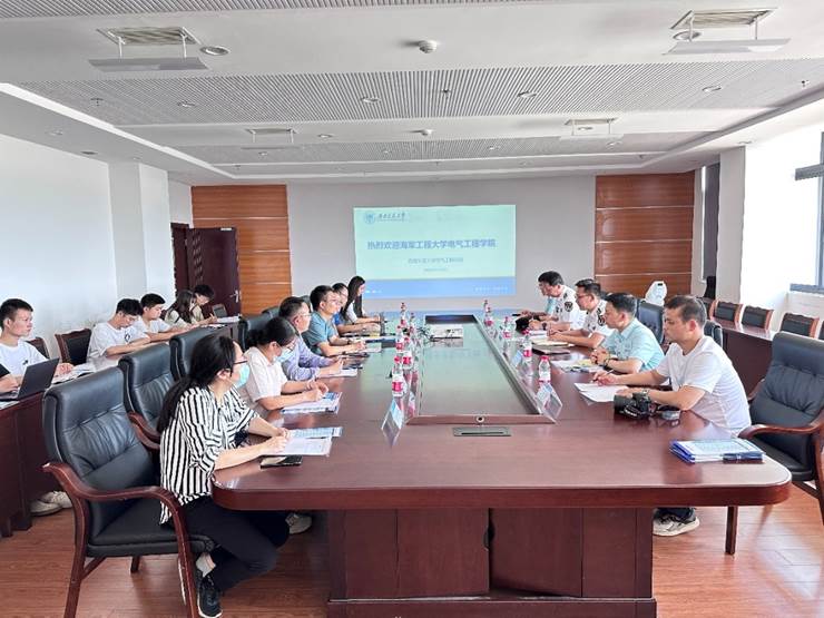 为加强两校之间的沟通与联系,推动文职人员遴选招聘工作,52914时,海军工程大学禁忌书屋 一行到学院开展交流座谈。海军工程大学禁忌书屋 某教研室主任甄洪斌,课程团队负责人于飞、杨律,实验室张正康以及学院干事张佳栋;禁忌书屋 院长何正友、副院长陈民武、电力工程系副主任张血琴、电力电子与电力传动系副主任/《电机学》课程教师葛兴来、电力电子与电力传动系副主任王嵩、《电力电子技术》课程教师沙金、学生支持办公室主任张婷婷、教学秘书李砚玲参加会议。陈民武副院长主持会议。