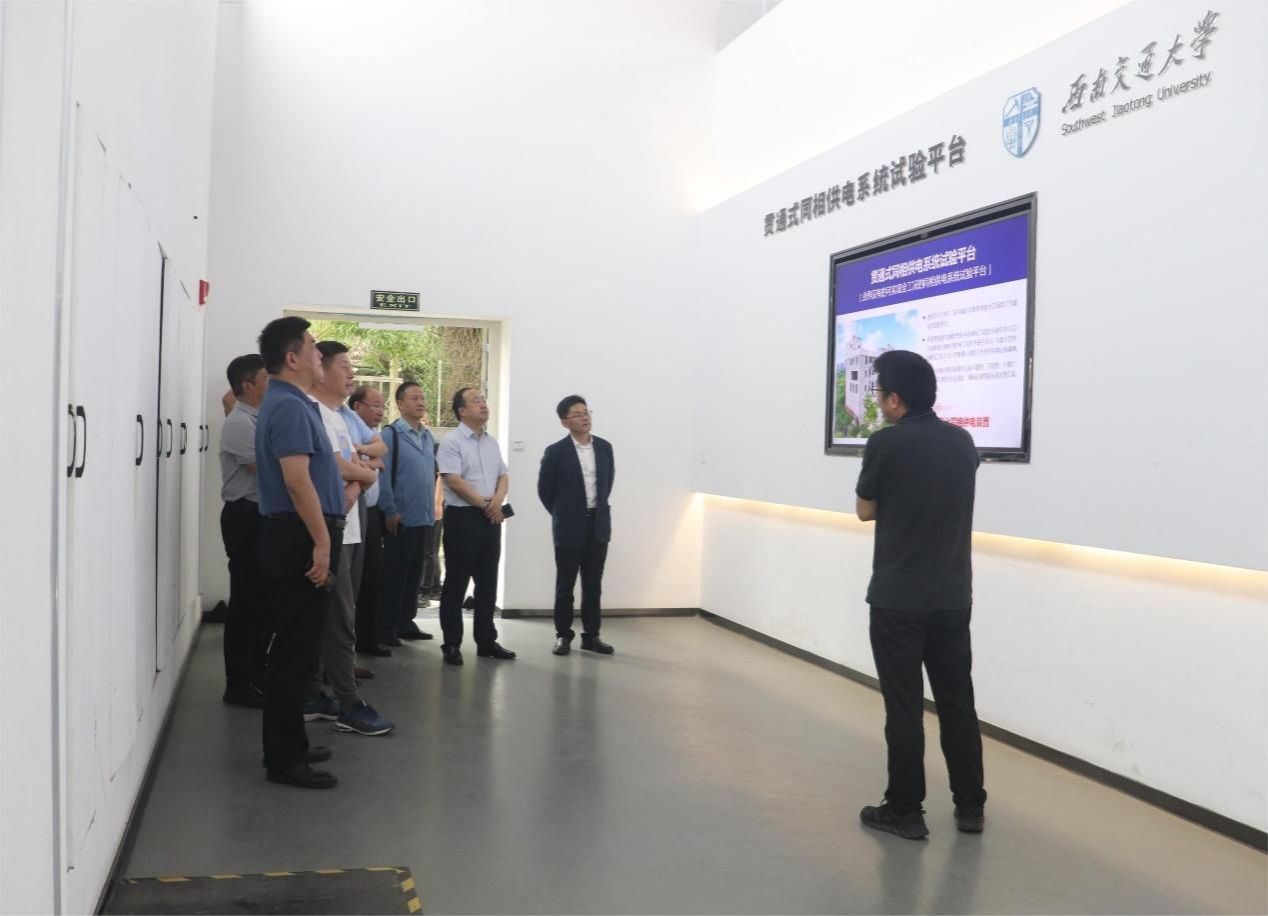 调研组一行首先参观了创新工作室的同相供电产业化平台,并听取了创新工作室副主任解绍锋教授对创新工作室的创新团队、核心技术、创新成果等内容的介绍。工作室成员汇报了国家重大铁路贯通供电与电网安全技术研究的情况,中铁一院电化院吴波汇报了临额铁路同相双边供电方案研究的情况。考察调研组就同相、双边供电系统技术与创新工作室领衔人李群湛教授团队进行了深入交流和探讨。