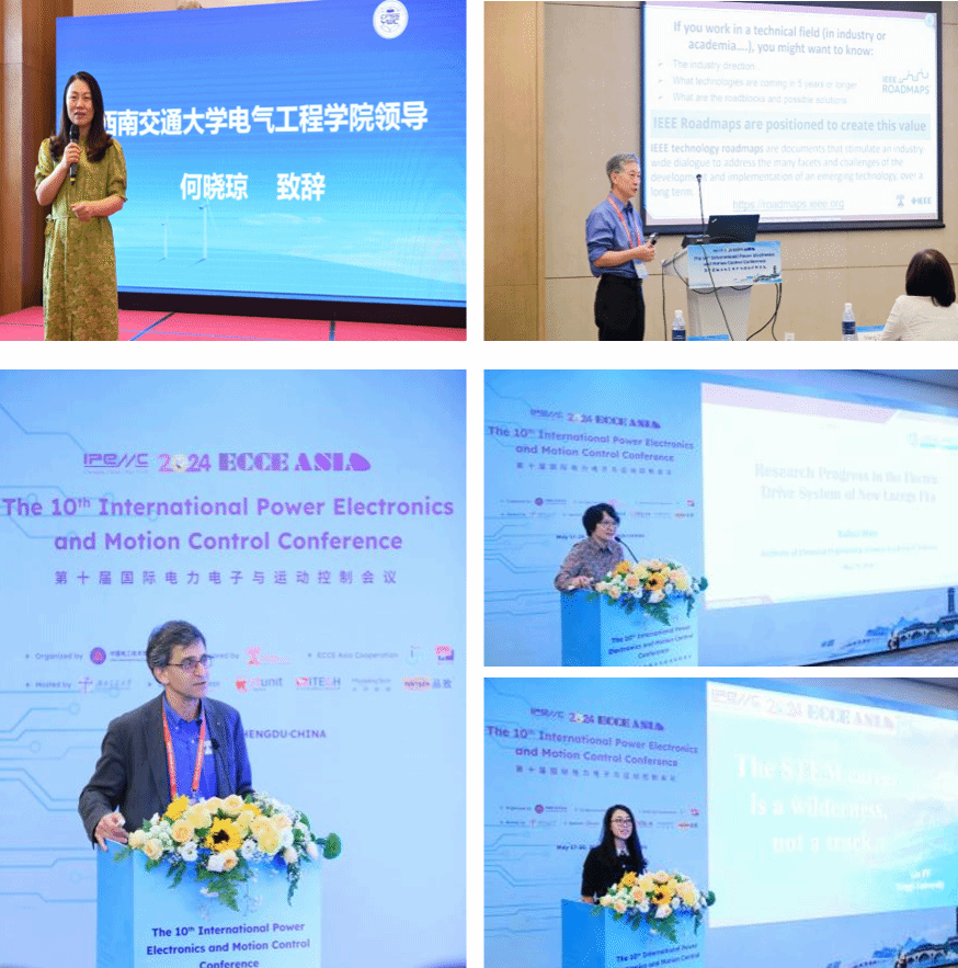 开幕式结束后,10位特邀嘉宾分别作主旨报告,围绕电力电子与运动控制领域的能源转换、器件设计、系统控制、行业发展等问题进行研讨。中国工程院院士丁荣军作题为《The Development and Application of Power Semiconductor Technology》的报告;美国工程院院士、弗吉尼亚理工学院Dushan Boroyevich教授作题为《Future Systems for Transmission and Distribution of Electrical Energy》的报告;中国科学院院士、武汉大学刘胜教授作题为《DFX: Collaborative Design Methods and Technologies for High Yield and Extreme Reliability of Power Electronic Chips and Packaging 》的报告;智利工程院院士、圣塞巴瓦斯蒂大学Jose Rodriguez教授作题为《Model Predictive Control: Basic concepts, Applications, Advances and Challenges》的报告;日本东京大学Makoto Takamiya教授作题为《Injecting Digital into Power Electronics via Gate Driver ICs》的报告;韩国首尔大学Jung-Ik Ha教授作题为《Progress, Status, and Challenges in Electric Motor Drive Technology》的报告;中国禁忌书屋 、国家轨道交通电气化与自动化工程技术研究中心主任高仕斌教授作题为《Transit“Network-Source-Storage-Vehicle”Collaborative Energy Supply》的报告;美国弗罗里达大学Shuo Wang教授作题为《Advances and Challenges in the Modeling and Suppression of Electromagnetic Interference for Power Electronics Systems》的报告;美国工程院外籍院士、苏黎世联邦理工学院Johann Walter Kolar教授作题为《e-VTOL Aircraft-The Future of Urban Air Mobility》的报告;美国国家发明家科学院院士、中弗罗里达大学Issa Batarseh教授作题为《Energy Access and Energy Transition: Challenges and Opportunities》的报告。