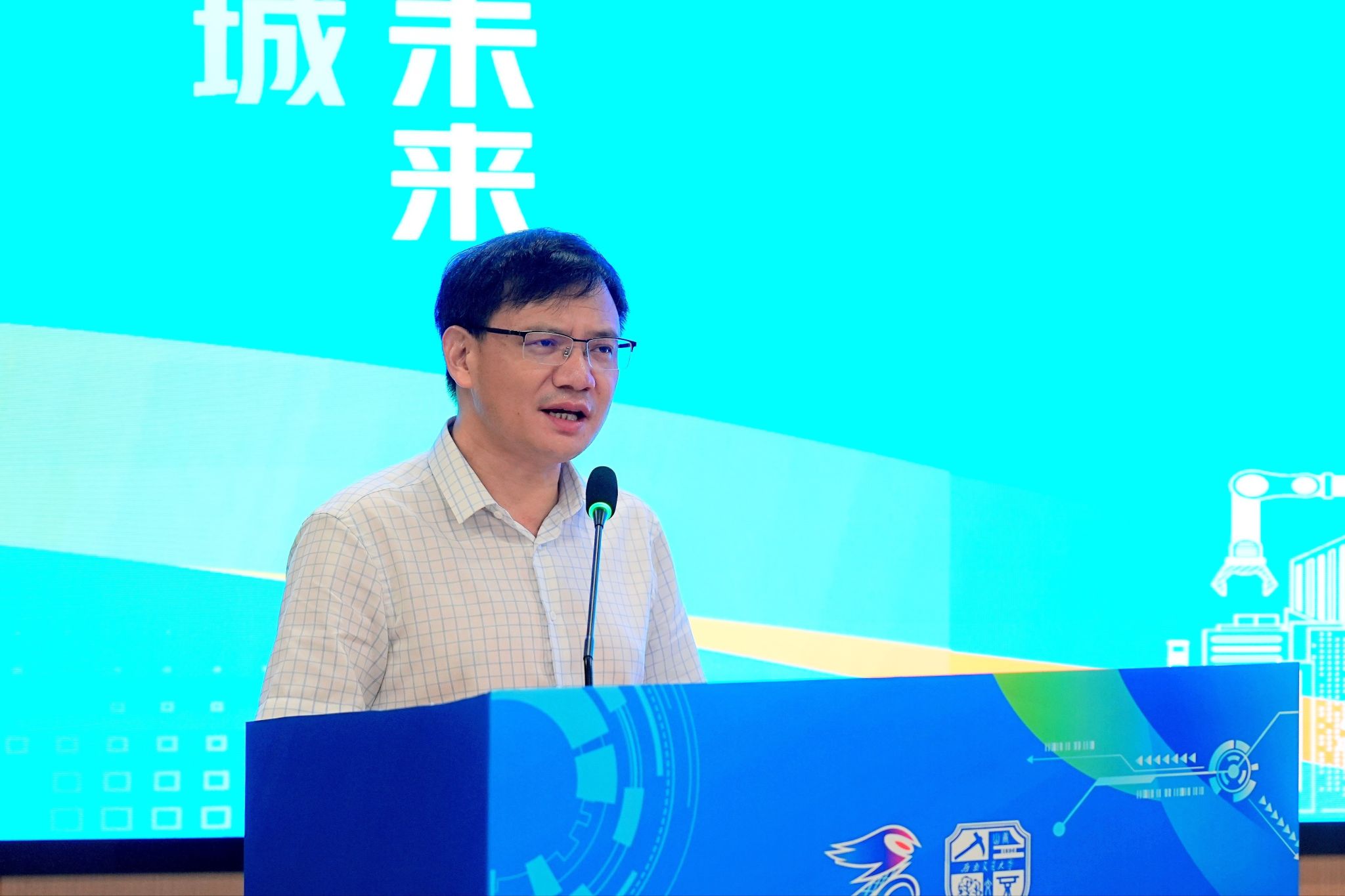 中国高校智能机器人创意大赛专家委员会秘书长顾大强教授以视频形式向大家致辞。顾大强教授首先对大赛的开幕表示衷心祝贺,对关心和支持大赛发展的四川省各高校表示衷心感谢。顾大强教授提到,中国高校智能机器人创意大赛始创于2017年,至今已经连续举办六年,今年的比赛规模尤甚以往,希望同学们能够在比赛中提升实践能力、培养创新思维,为社会发展添砖加瓦。