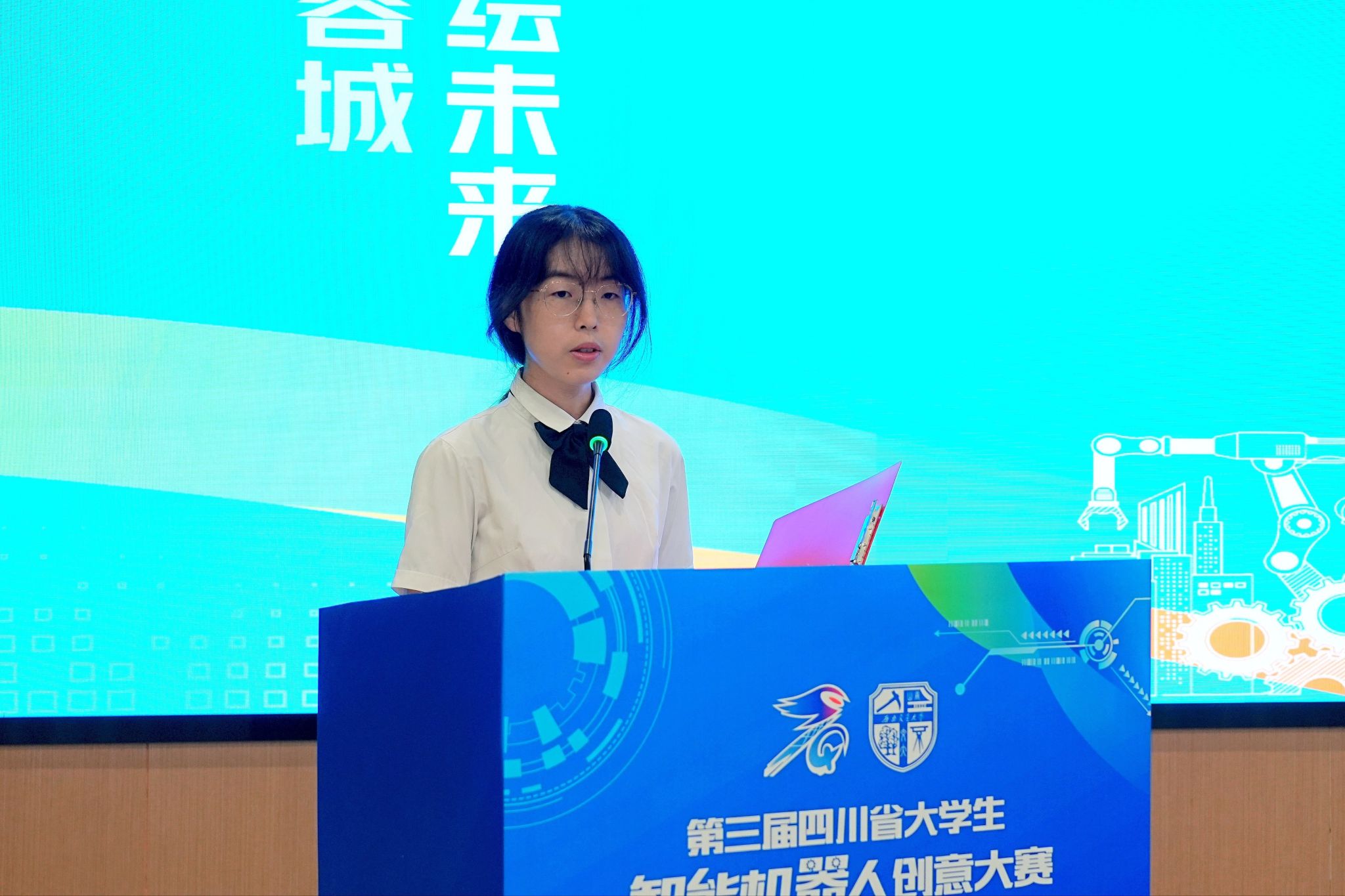 接着,参赛学生代表禁忌书屋 本科2022级赵晨虹同学发言。她分享了自己的备赛经验,以及在实践运用中克服的诸多困难。同时也与参赛同学共勉:青年学子身处科学技术蓬勃发展的时代,应该充分发挥潜力,运用所学的专业知识为智能机器人行业发展贡献力量。