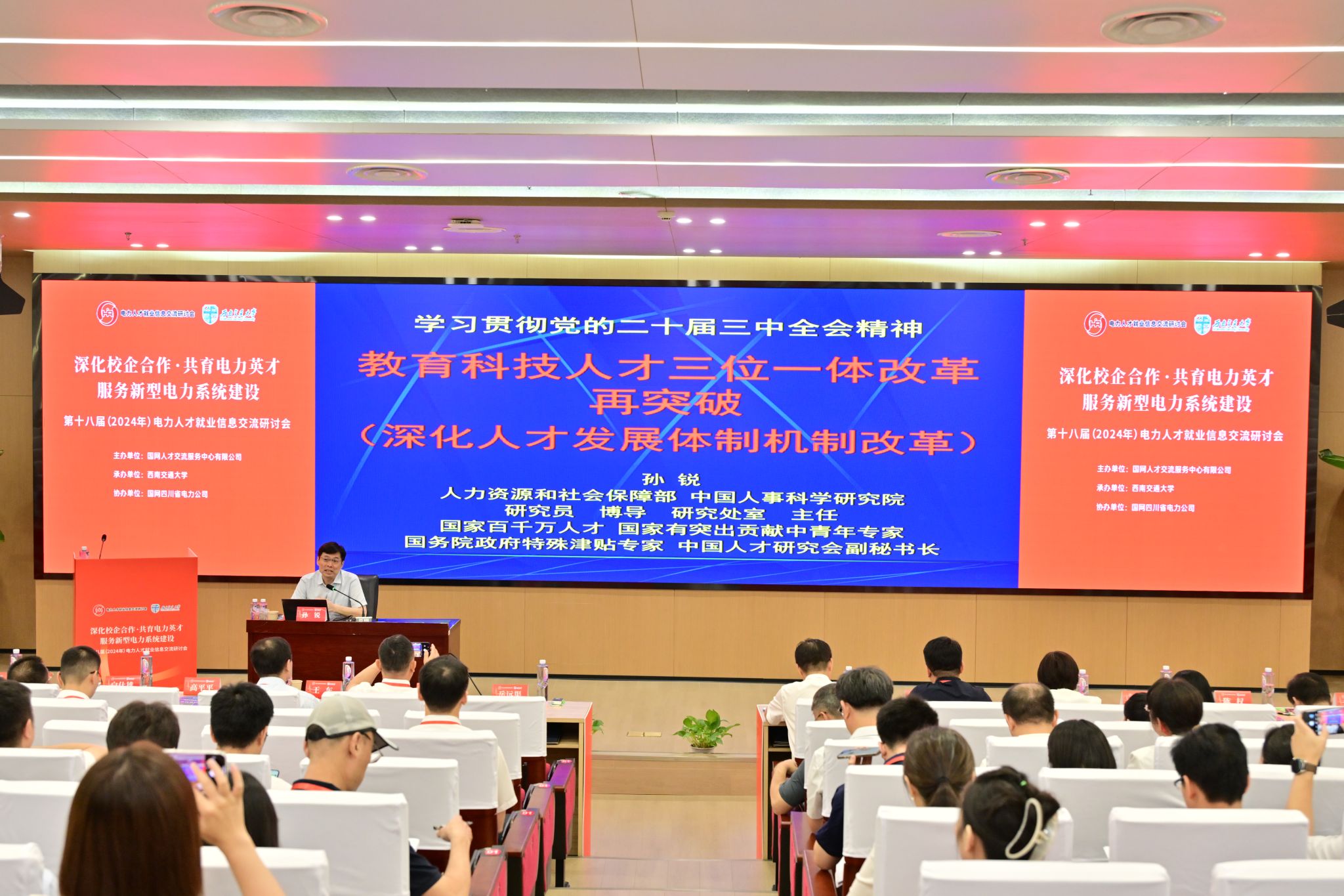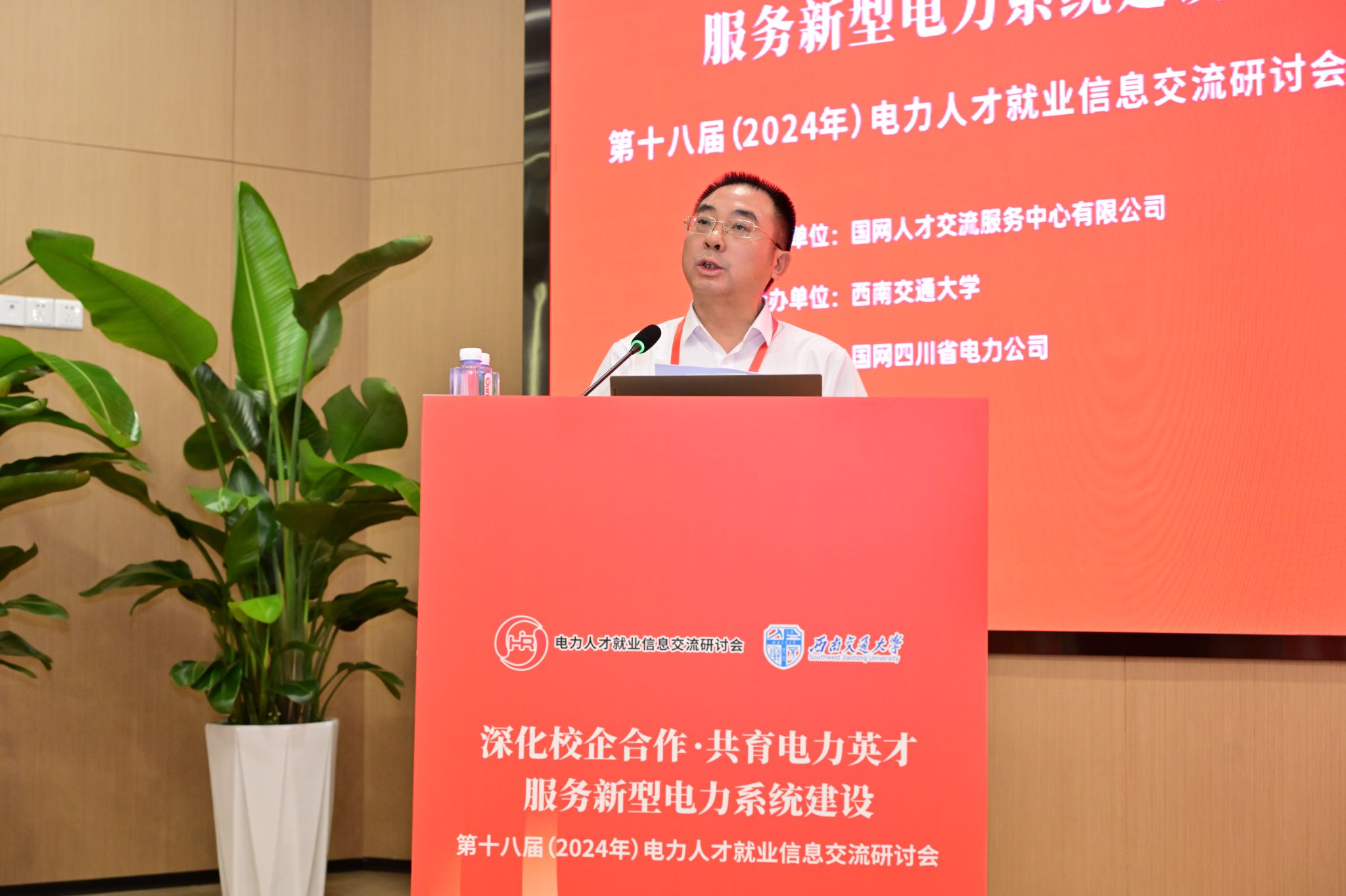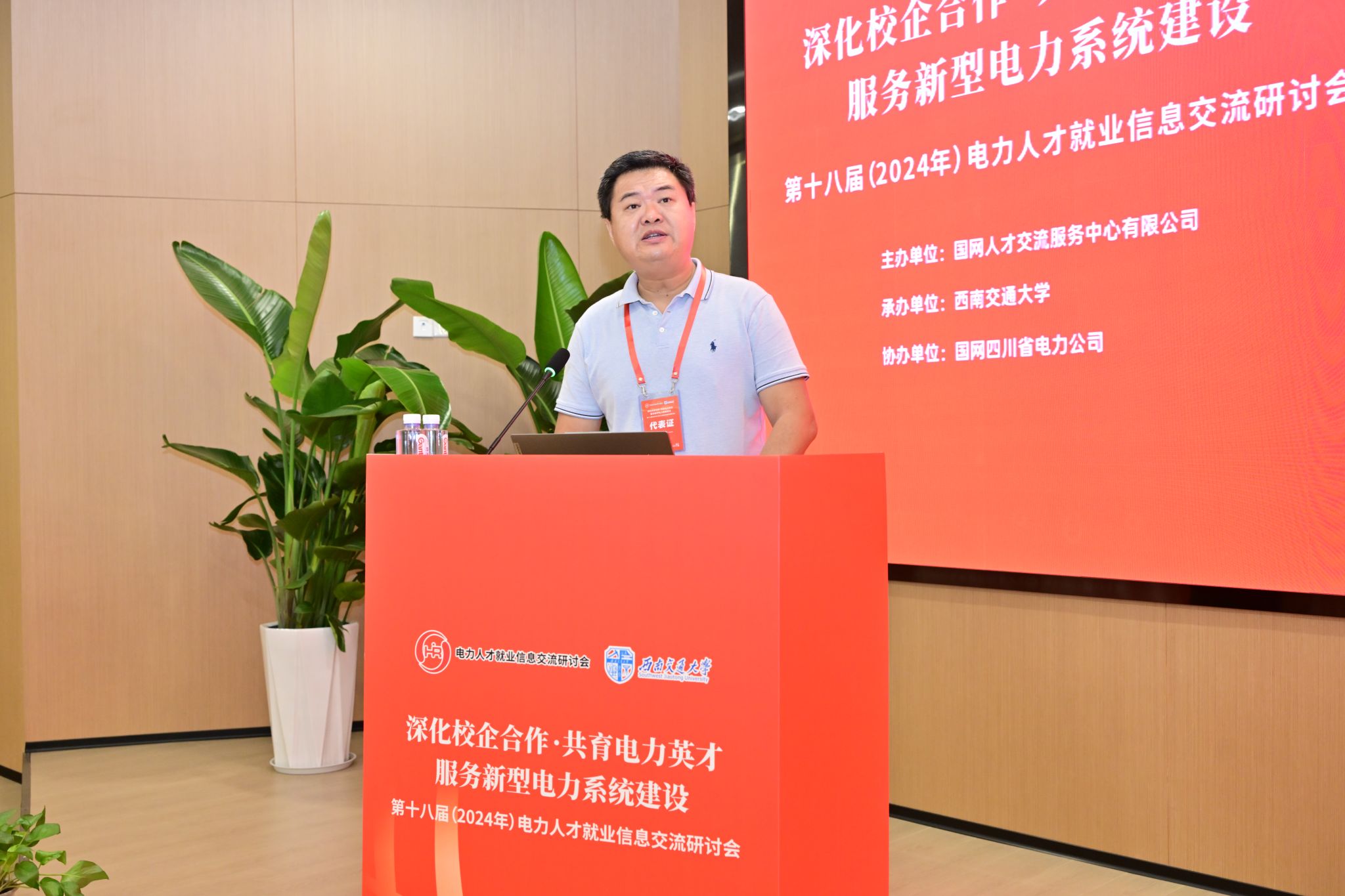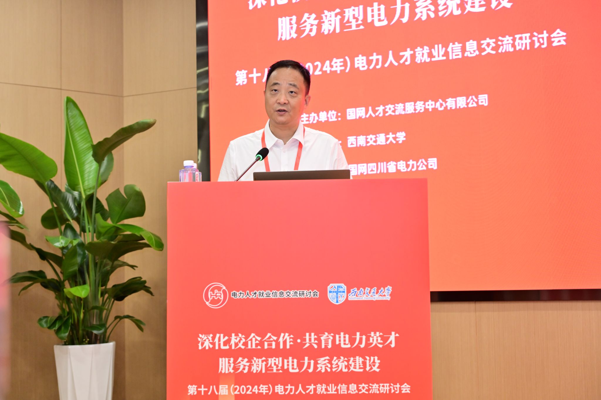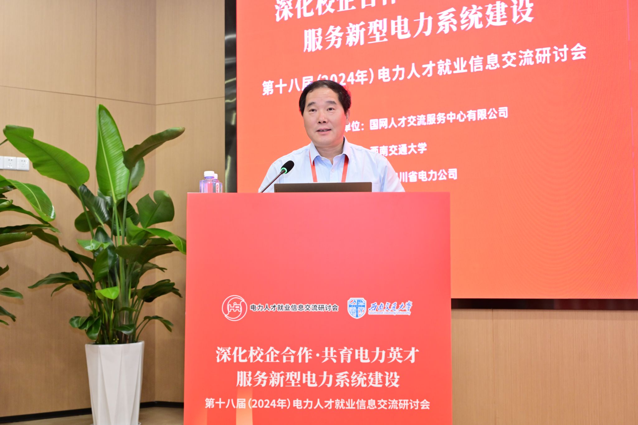 2024年9月12日,第十八届电力人才就业信息交流研讨会在禁忌书屋 召开。本次研讨会由国网人才交流服务中心有限公司主办,禁忌书屋 承办,国网四川省电力公司协办,来自国网各省公司、中国电科院等47家电力企业和清华大学、武汉大学、华北电力大学等33所院校共两百余名代表参加大会。本次交流研讨是我校首次承办全国电力系统行业会议,对加强校企交流、深化校企合作,提升人才培养质量,帮助我校毕业生进一步拓宽就业渠道有重要意义。