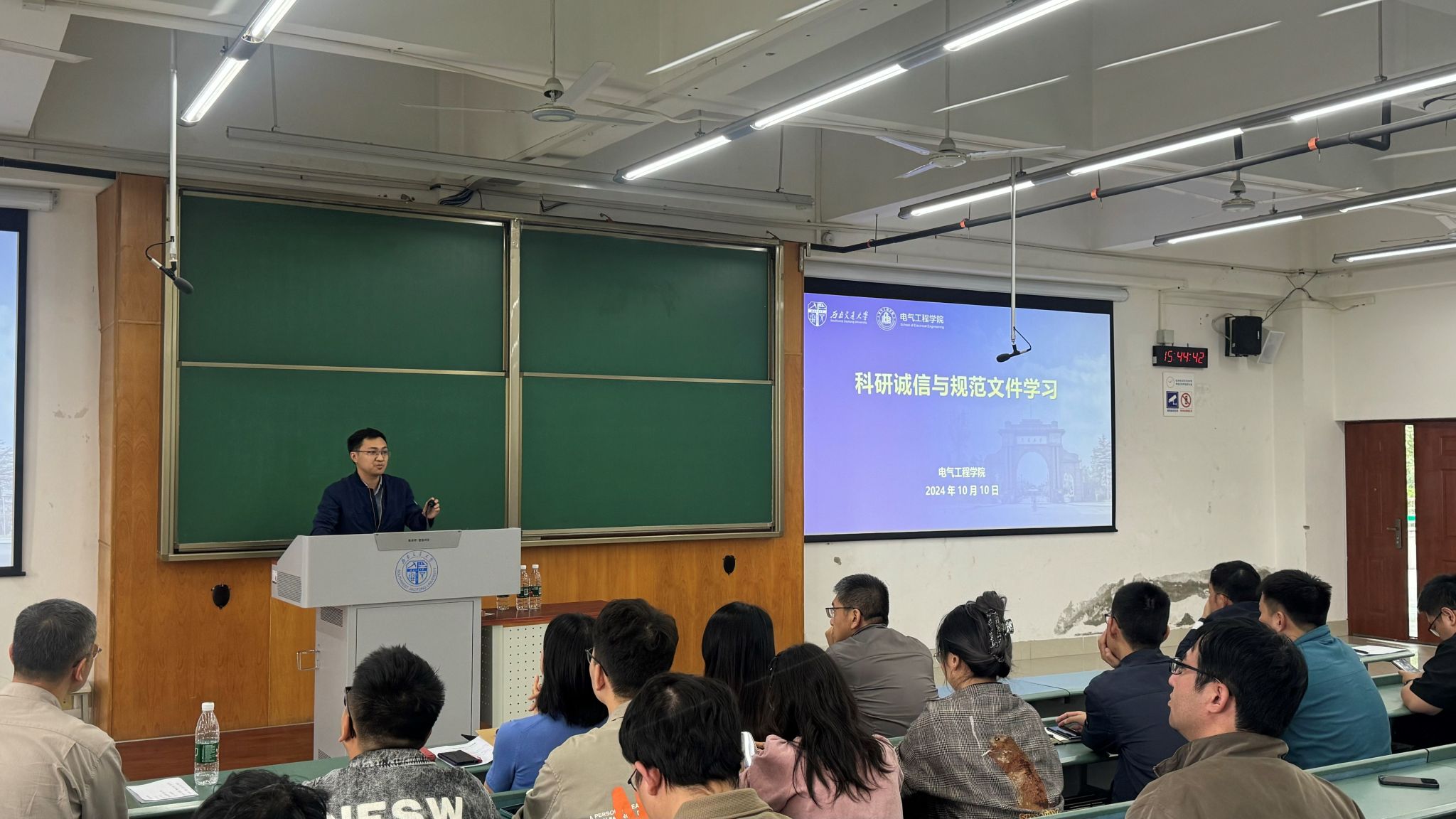 学院科研工作主管廖凯从科研学术诚信、科研投标规范等方面提醒全体教职工要注重科研诚信,遵守相关的管理规定,严格使用学校科研管理系统和合同管理系统,规范化开展科研工作。