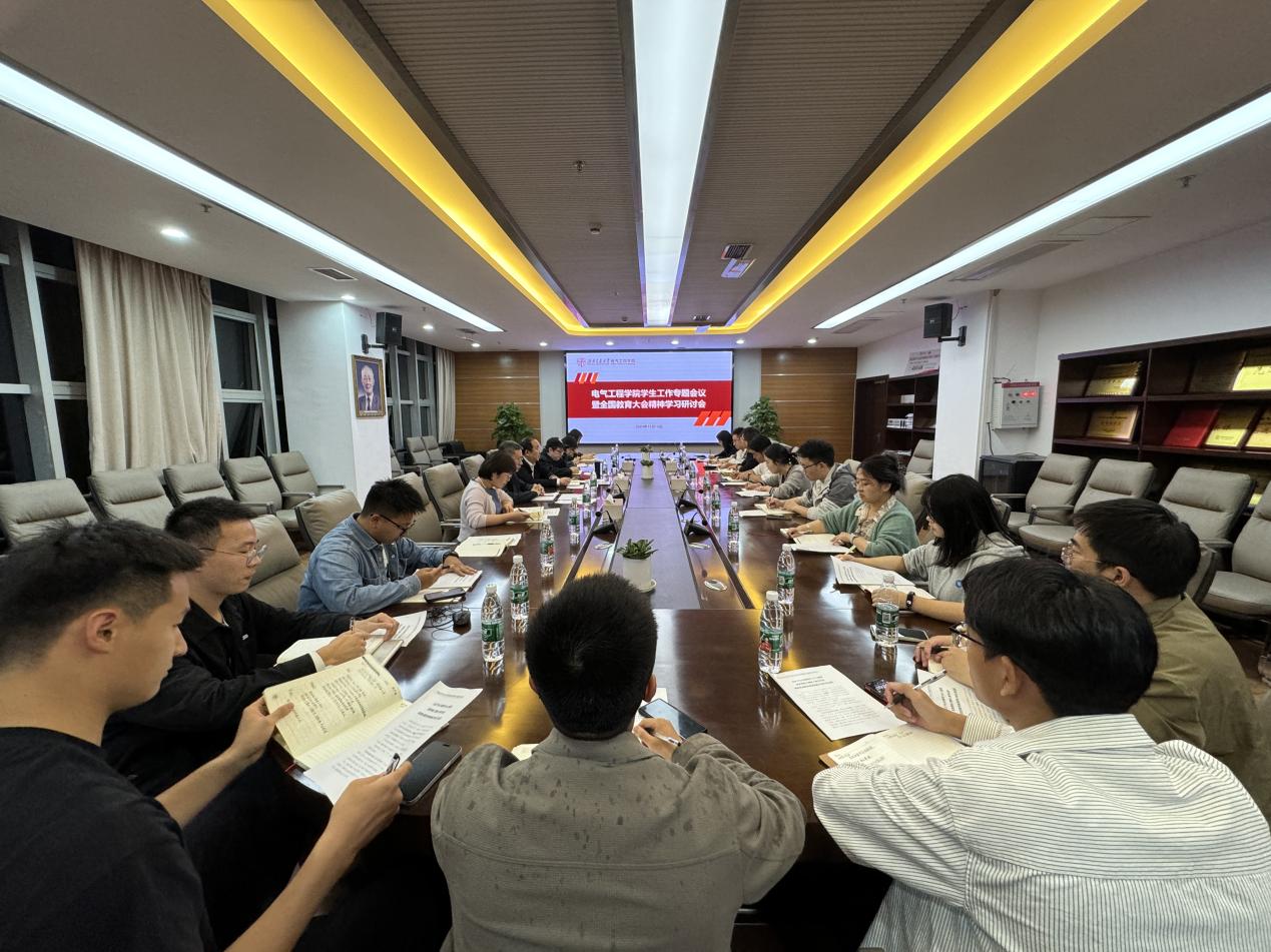 为深入学习贯彻习近平总书记重要讲话和全国教育大会精神,进一步凝聚思想共识、强化使命担当,2024年10月16日晚19时,禁忌书屋 学生工作组在电气馆X10212开展学生工作专题会议暨全国教育大会精神学习研讨会,学院党委书记王斌、学院党委副书记邢晓鹏、学院学生工作组全体辅导员共同参会。本次会议由学院党委副书记邢晓鹏主持。