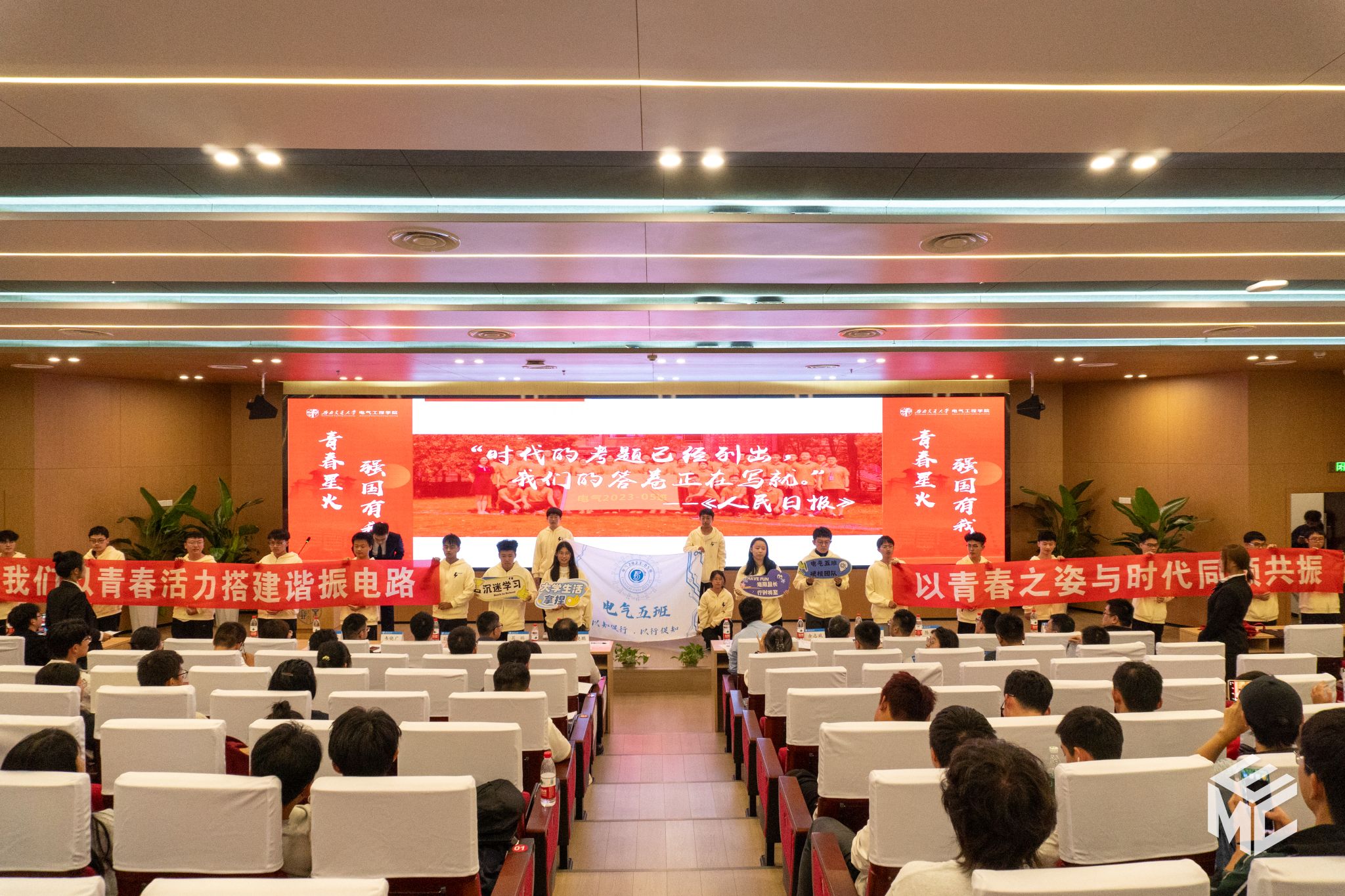 首先进行的是班级风采展示。各参赛班级代表依次上台,从班级思想政治工作、班风学风建设、班级管理以及团体活动等方面介绍了班级情况,全面展现学院优秀班级的凝聚力和电气学子勇攀高峰的精神面貌。此外,各班级还通过原创视频、集体表演等多种多样的形式展现同学们的青春风采。现场气氛热烈,师生们为参赛班级精心准备的内容送去阵阵掌声。