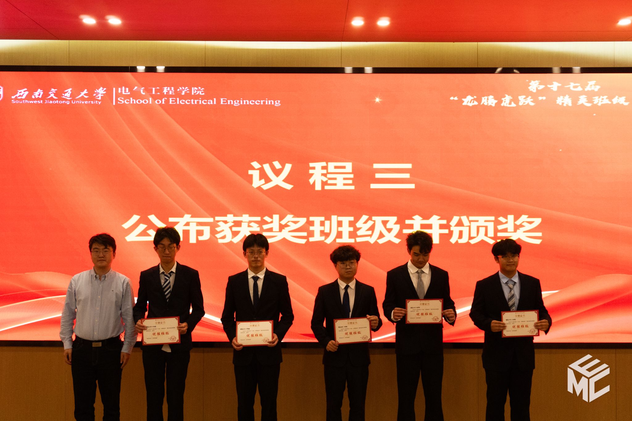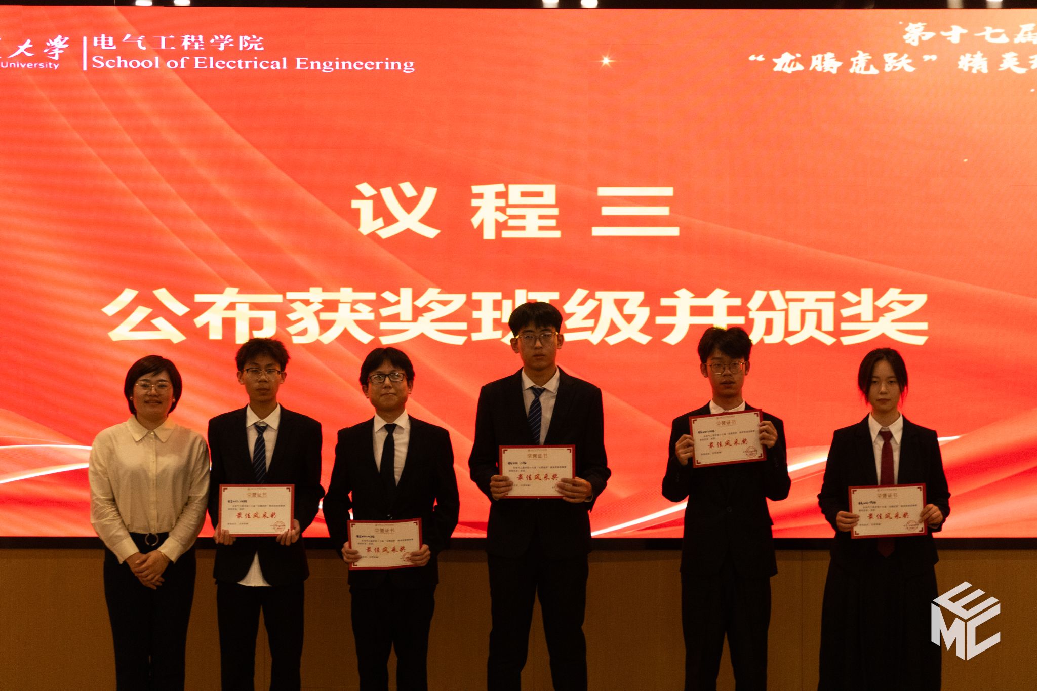 交流环节结束后,主持人宣布了本次“龙腾虎跃”精英班级答辩赛的获奖名单,邢晓鹏副书记、张异老师、韩莹副教授为获奖班级颁发荣誉证书。各参赛班级用突出的成绩与精彩的答辩赢得了师生们热烈的掌声。