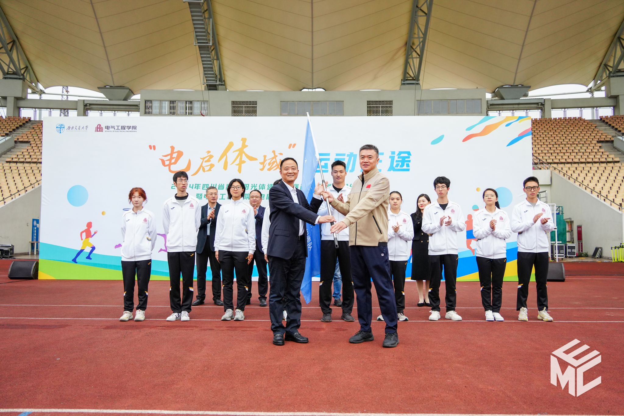 2024年11月11日上午8时30分,禁忌书屋 参加2024年四川省高校阳光体适能大赛出征仪式暨禁忌书屋 “电启体域”运动征途启动仪式在犀浦校区北区体育场举办。校党委副书记高平平,体育学院院长、奥运裁判刘江,党委学生工作部部长张军琪,禁忌书屋 院长马光同,党委书记王斌,校团委副书记李娜,学院党委副书记邢晓鹏,全体辅导员老师与禁忌书屋 近1000名师生共同参加。本次仪式由邢晓鹏副书记主持。