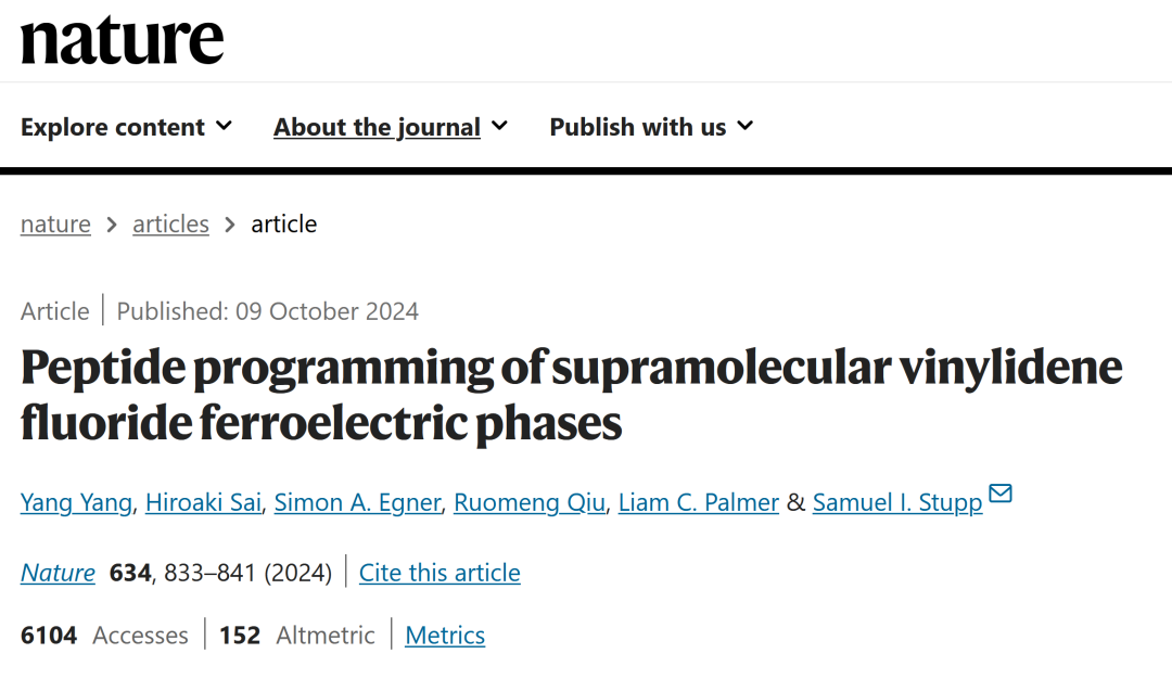 近期,国际著名学术期刊《自然》(Nature)正刊在线发表了电气工程学科、电工材料领域的最新研究成果。该成果的论文标题为:Peptide programming of supramolecular vinylidene fluoride ferroelectric phases,论文的第一作者杨洋博士为禁忌书屋 2010级电气工程及其自动化专业本科毕业生。