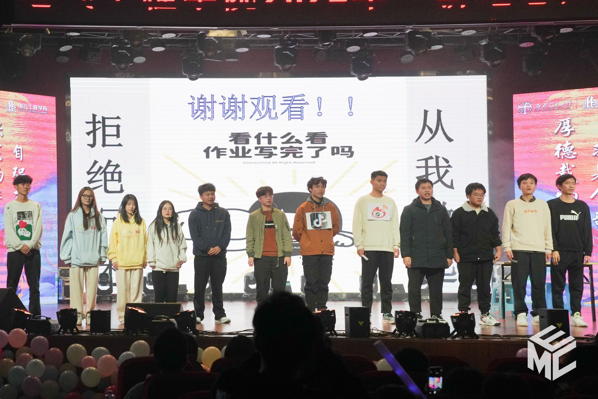 晚会下半场以街舞社的《MEOW》开始,节奏动感,青春洋溢。电气2024-05班的舞台剧《范进中举新编》鼓励同学们在学习的路上持之以恒、孜孜不倦;电子2024-05班的舞台剧《时间都去哪了》号召同学们拒绝沉迷网络。
