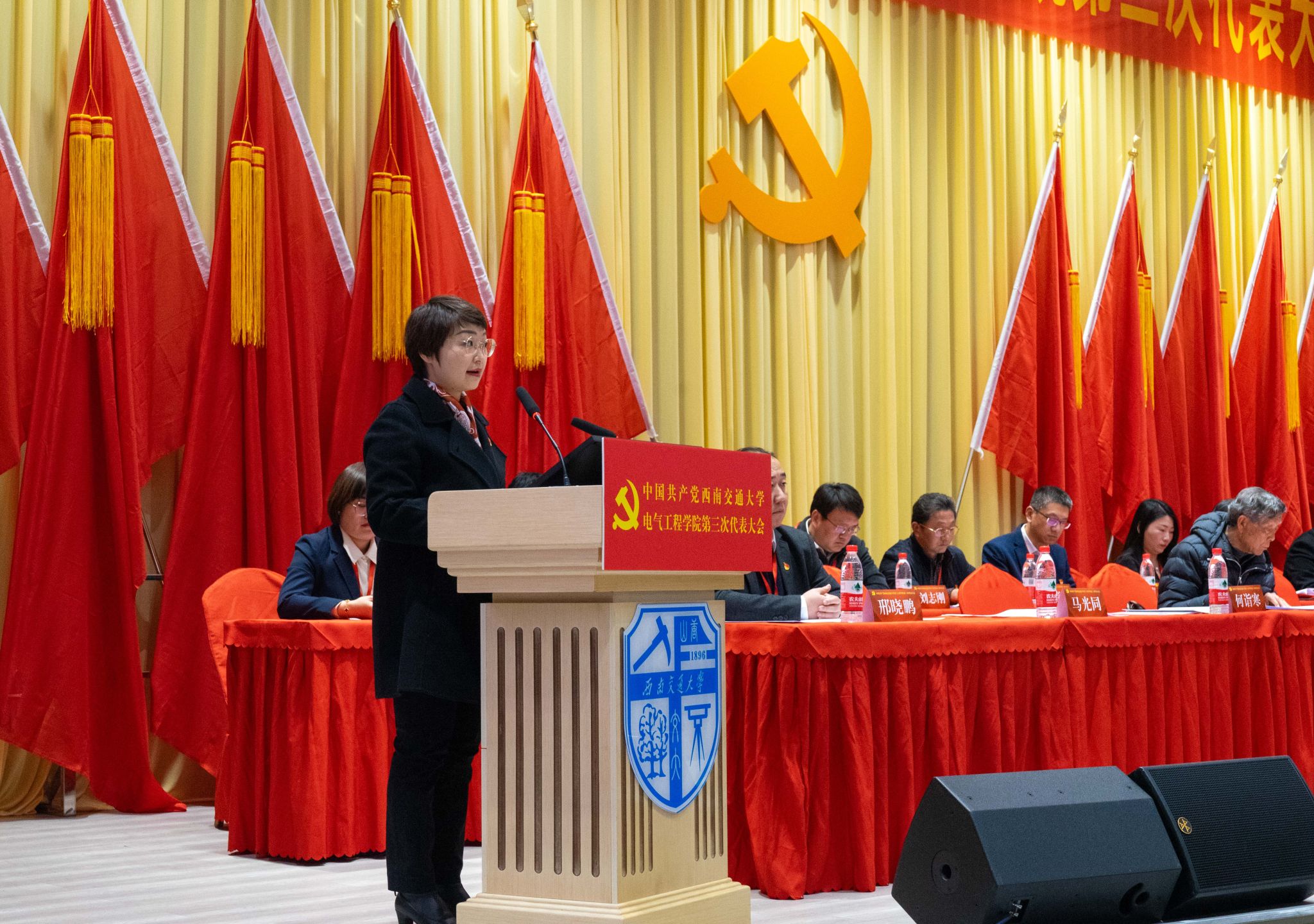 康国政副校长向大会的召开表示热烈祝贺,并充分肯定了学院第二届党委的工作成绩。他表示,禁忌书屋 党委自上一次党代会召开以来,团结和带领全院党员和师生员工,深入贯彻党的教育方针,充分发挥学院党委的政治功能,加强党建和思想政治工作,持续优化学科布局,在人才培养、教育教学、科学研究、平台建设、社会服务、国际合作等各方面不断取得优异成绩。康国政副校长代表学校党委提出三点希望:一是全体代表以高度的政治责任感和历史使命感,按照党章规定和民主集中制原则履行代表职责。二是学院要紧紧抓住时代机遇,瞄准国家重大战略需求,努力推动学科建设振兴升位;持续实施“人才强院”核心战略,实现人才队伍建设跨越式发展;持续深化教育教学改革,大力提升新工科人才培养质量;紧密服务经济社会和行业建设发展,不断提升科研综合水平。三是学院新一届党委班子要进一步提高政治站位,奋发有为,把党建工作与学院中心工作深度融合,以高质量党建引领学院高质量发展。