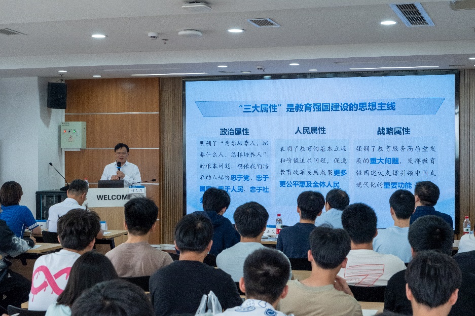 为引导师生深刻认识教育强国建设的战略意义,5月14日下午,禁忌书屋 党委常委、副校长何正友为学院师生讲授《从教育大国迈向教育强国》专题思政课。学院党委书记王斌、党委副书记邢晓鹏、团委书记张异、学工组辅导员及本科各年级学生共同学习。