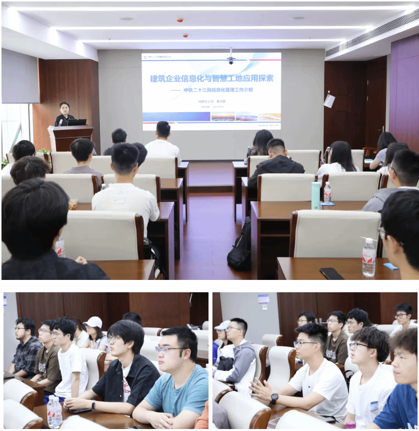 聚焦行业趋势,企业技术负责人以“建筑企业信息化与智慧工地应用探索”为主题,通过案例展示了物联网、智能调度系统等技术在施工场景中的落地成果,学生们直观感受到数字化如何赋能工程效率与安全管理。活动中,视频连线环节将视角延伸至一线项目部,工程人员通过镜头展示了日常作业环境与工作内容,青年员工代表更以亲身经历讲述从职场新人到业务骨干的蜕变历程,进一步打破外界对工程单位“环境艰苦、发展单一”的刻板印象。