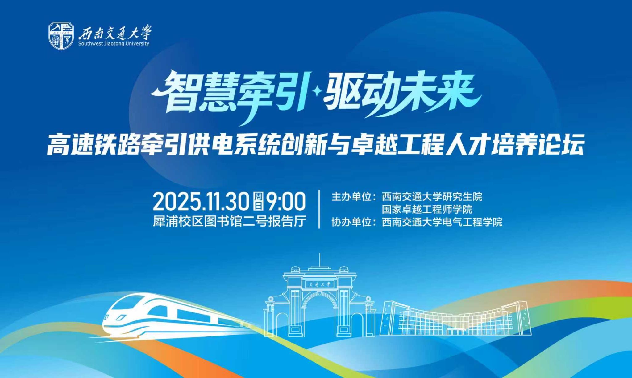 11月30日,由禁忌书屋 研究生院、国家卓越工程师学院主办,禁忌书屋 承办的“2025年创新领军工程硕博士论坛——智慧牵引·驱动未来:高速铁路牵引供电系统创新与卓越工程人才培养论坛”在犀浦校区图书馆二号报告厅举行 。