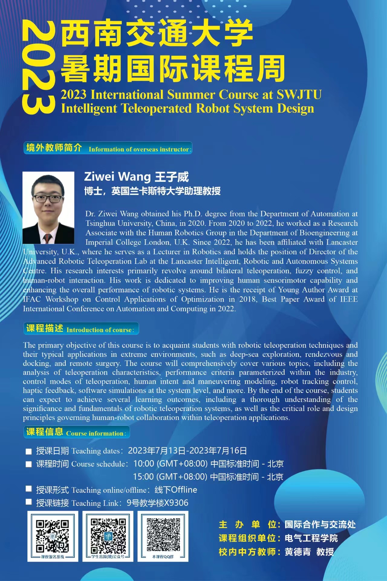 3. 教学形式:由海外高水平大学或科研机构教师线下教学或线上直播授课。